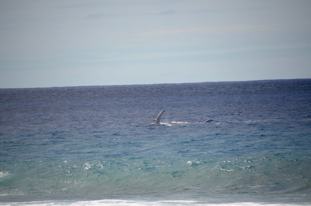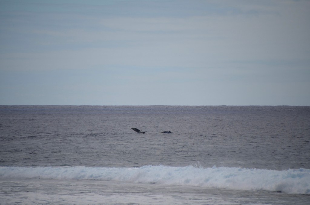 Wir hatten jedoch ein besseres Zusammentreffen mit einem Wal – und zwar direkt am Strand vor unserer Unterkunft am ersten Tag auf Rarotonga. Während des Mittagessens dachte ich bereits, eine typische Walfontäne auf dem Meer gesehen zu haben, aber es war zu weit weg, um sicher zu sein. Später, als wir gemütlich in unseren Liegestühlen lagen, waren wir uns jedoch sicher: Es war ein Wal, direkt vor unserem Hotel!