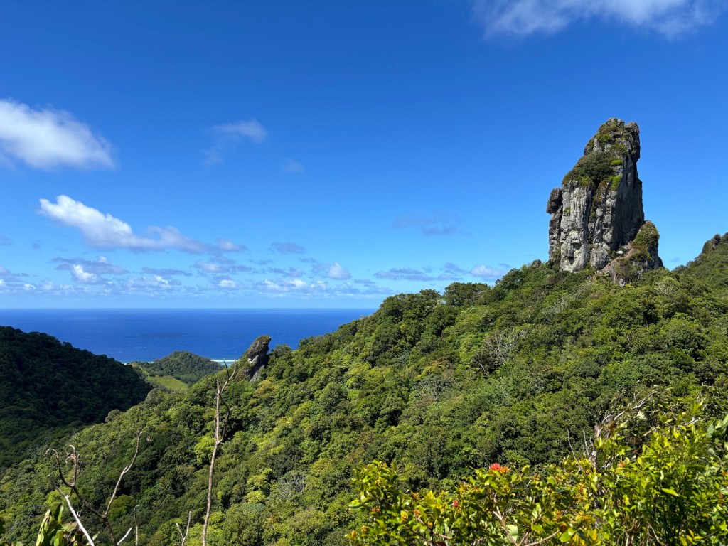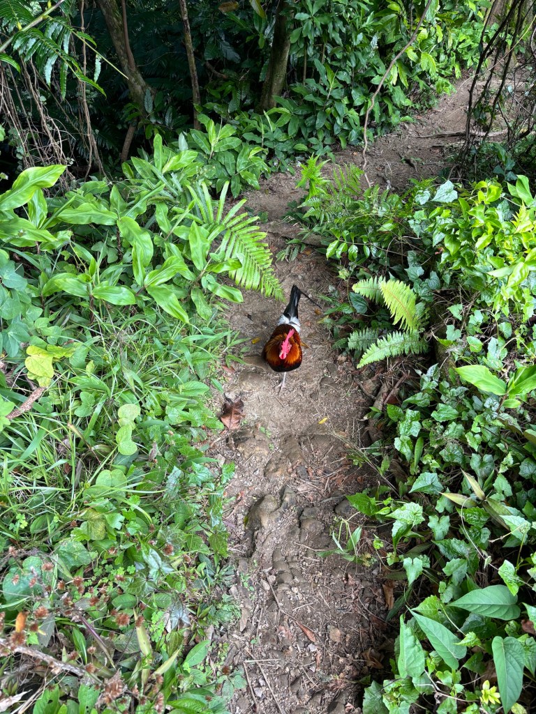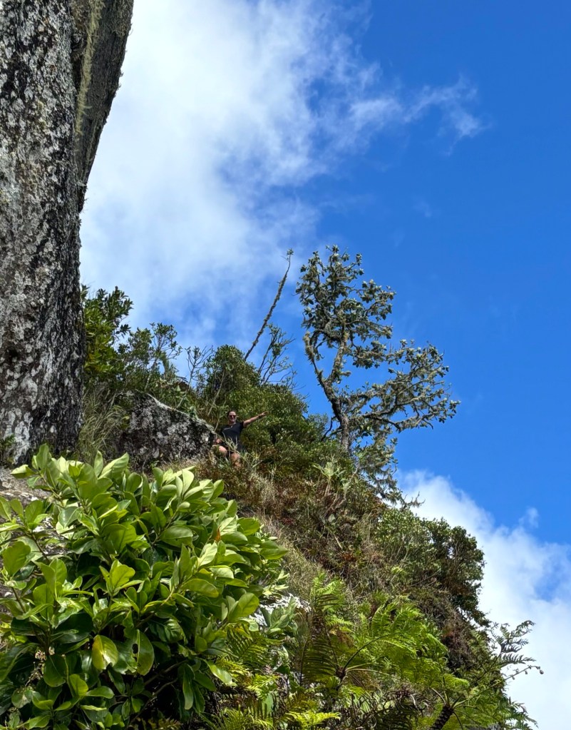 Unterwegs bekamen wir Gesellschaft von Roland, einem Hahn, der auf dem Berg lebt und uns bis zum Gipfel begleitete. Oben angekommen genossen wir die atemberaubende Aussicht über die ganze Insel. Für mich ging es noch etwas höher hinauf über die Felsen, welche bis zu einem begrenzten Teil erklimmbar sind.