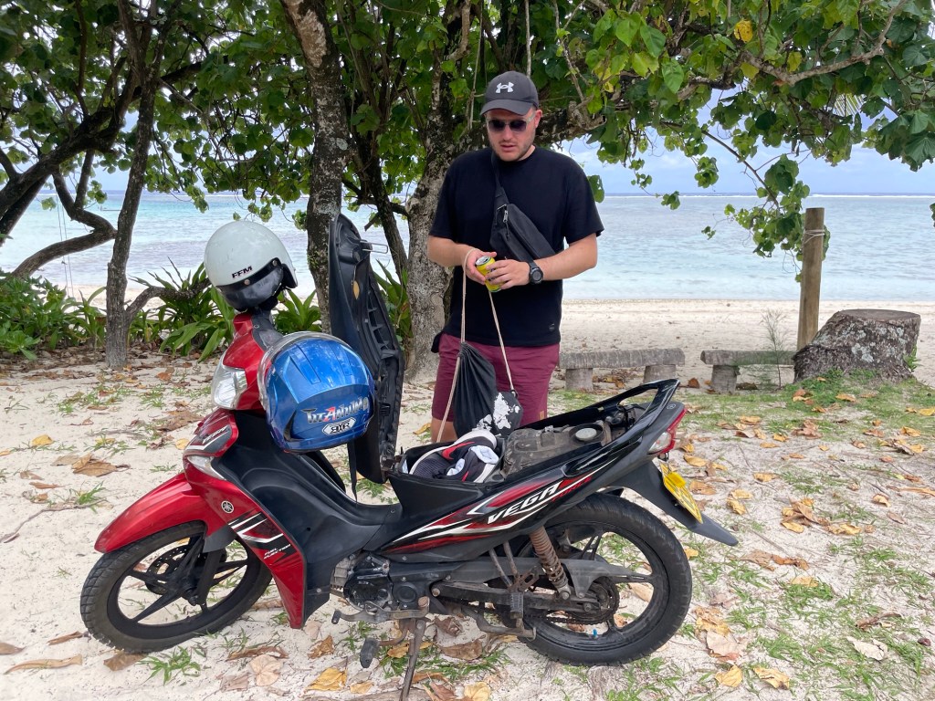 Da Rarotonga deutlich grösser ist als Aitutaki, mieteten wir uns für einen Tag einen Roller. Dieser war sogar günstiger als zwei Fahrräder für uns beide. Mit dem Roller konnten wir unsere Einkäufe erledigen, eine komplette Runde um die Insel drehen und unterwegs an verschiedenen Stränden oder Aussichtspunkten anhalten. Das Wetter war auch hier sehr wechselhaft, sodass wir auf unserer Rundfahrt sowohl Regen als auch Sonnenschein erlebten.