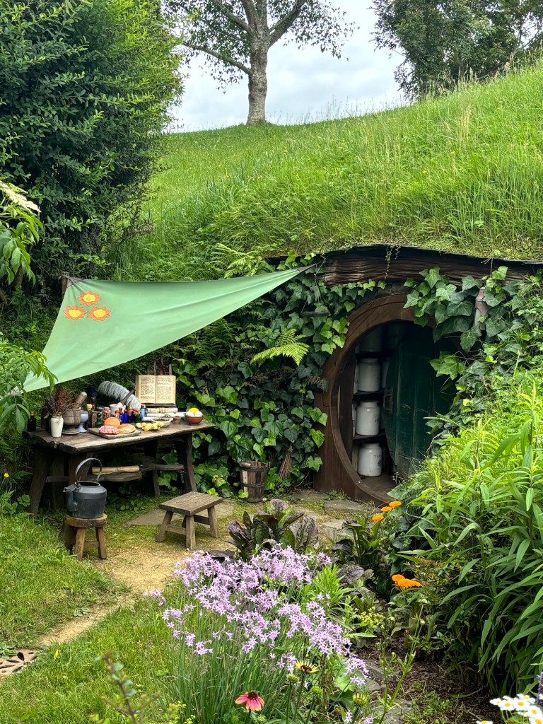 Der eindrücklichste aller Orte war für uns das Hobbiton-Filmset. Es sind die originalen Filmkulissen des Auenlandes. Hobbiton wurde nach den Dreharbeiten zu Herr der Ringe bewusst niedergebrannt und zerstört. Für die Hobbit-Filme musste es jedoch erneut aufgebaut werden. Diesmal entschied man, es dauerhaft zu erhalten und als Touristenattraktion zugänglich zu machen.
