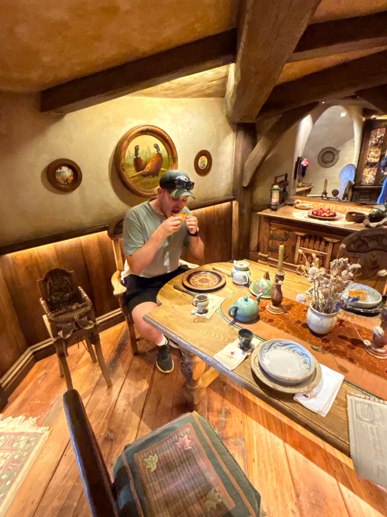 Mittlerweile kann ein vollständig eingerichtetes Hobbithaus besucht werden, und am Ende gibt es die Möglichkeit, über die bekannte Steinbrücke zu gehen und einen Krug Ale im „Zum Grünen Drachen“ zu genießen.