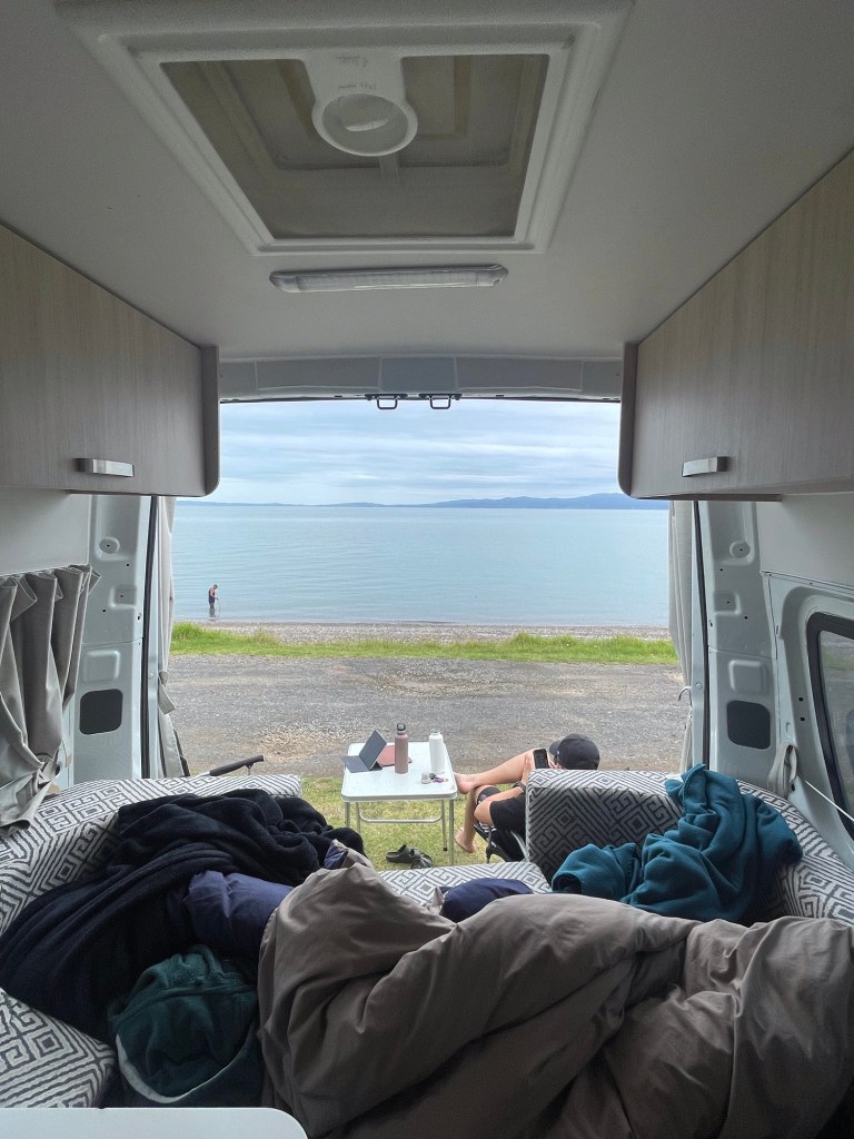 Wie wir ja bereits einmal kurz erwähnt haben, war unser Büsli zertifiziert für das freie Campen. Leider ist es doch etwas kompliziert, wirklich zu wissen, ob jetzt an einem Ort frei übernachtet werden darf oder nicht. Es gibt von Ort zu Ort Unterschiede und kein generelles Gesetz für ganz Neuseeland. Durch verschiedene Apps ist es aber doch sehr einfach möglich, Plätze zu finden, die offiziell für freies Campen errichtet sind. Teilweise mit WC oder sogar Dusche, teilweise ein einfacher Parkplatz in der Ortschaft, der tagsüber frei bleiben sollte.