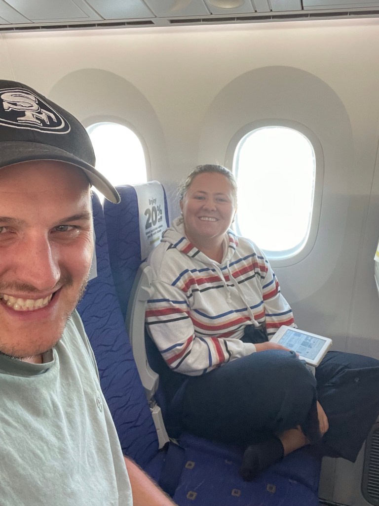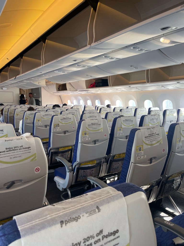 Wir sind von Australien aus mit dem Flugzeug zuerst nach Singapur und danach weiter nach Cebu geflogen. Der Flug von Perth war mehrheitlich leer, weshalb wir es uns gemütlich machen konnten.