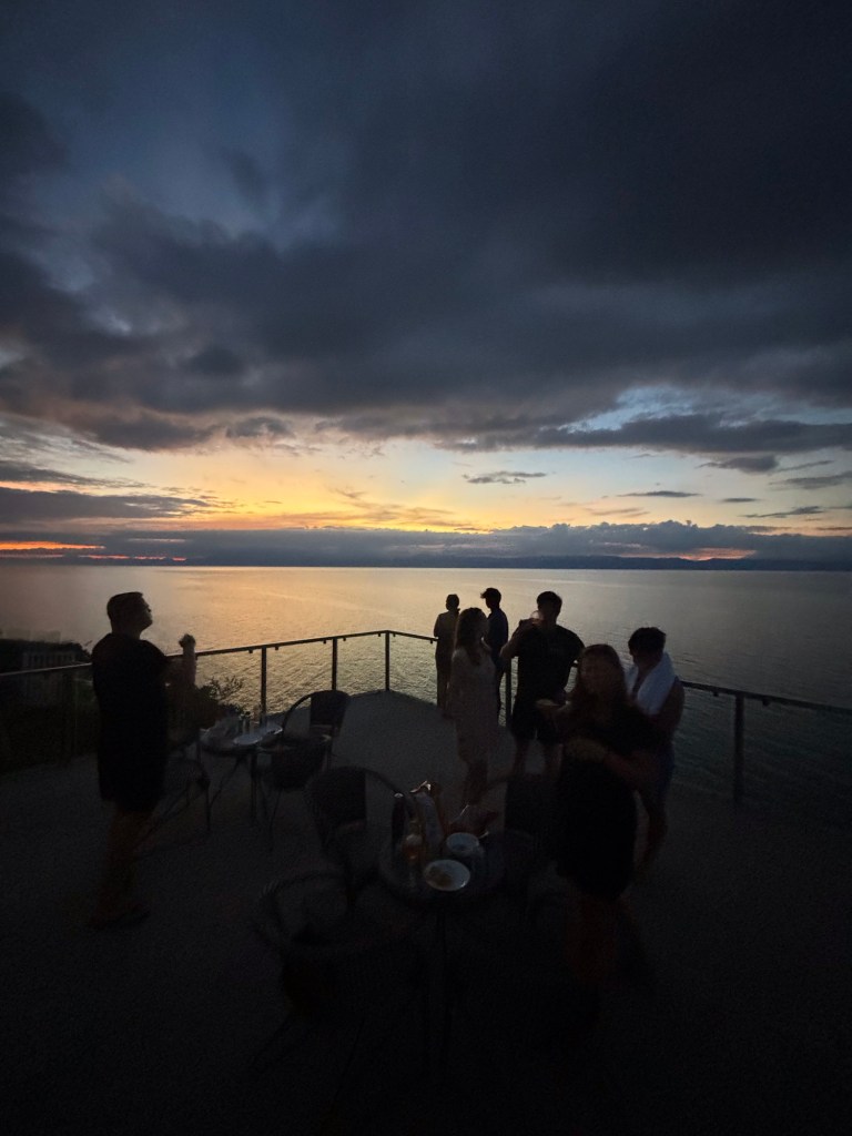 Den letzten gemeinsamen Abend zu acht haben wir auf unserer Aussichtsplattform beim Sonnenuntergang verbracht.