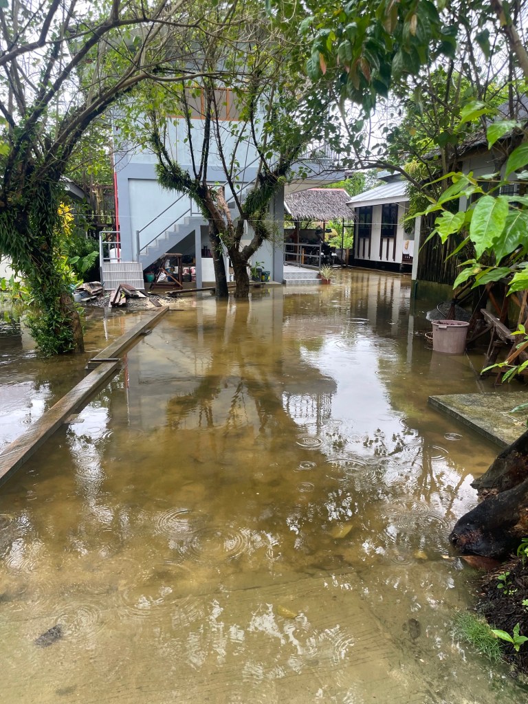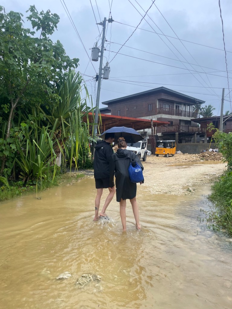 Februar ist auf Siargao im Vergleich zu anderen Inseln der Philippinen noch Regenzeit. Wir wussten, was uns erwarten könnte, aber mit so viel Regen hatten wir dann doch nicht gerechnet. An zwei Tagen hat es fast durchgehend geregnet, die Kleidung wurde nicht mehr trocken. Die Strassen wurden zu kleinen Bächen, und es kam immer wieder zu kurzen Stromausfällen. Laut Internet musste der Flugverkehr einen Tag lang eingestellt werden, was uns für unsere Abreise etwas nervös machte.