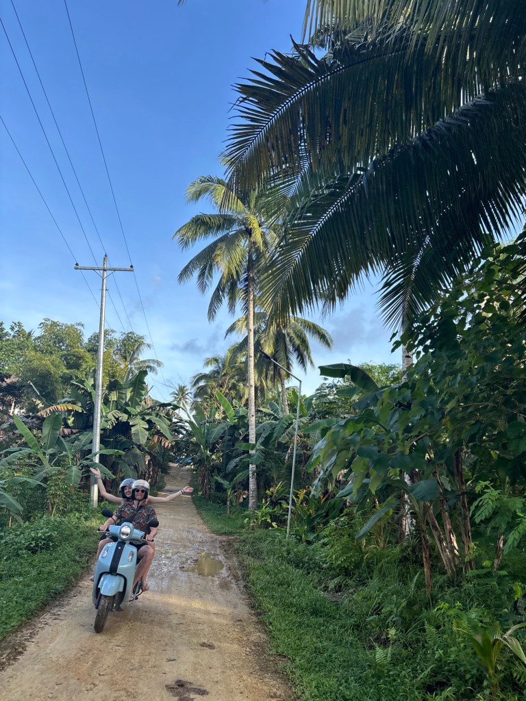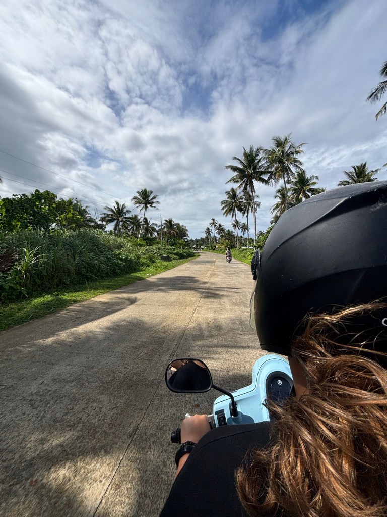 An unserem ersten Tag auf Siargao haben wir mit Rollern die Insel erkundet. Wir waren alle so happy, dass die Sonne schien, weshalb wir die Rundfahrt sofort machen wollten. Wir kamen an verschiedenen Stränden vorbei, fuhren durch Palmenplantagen – übrigens keine Palmölplantagen – und durch kleine Dörfer. Leider wurden wir auf der Rückfahrt doch noch von einem Regenschauer erwischt, sodass wir durchnässt in unserem Hotel ankamen.