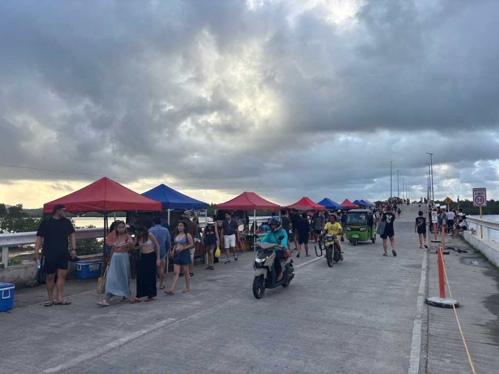 Etwas ausserhalb von General Luna gibt es eine Brücke, die abends zum Leben erwacht. Dort gibt es verschiedene kleine Stände mit Streetfood, und man kann den Sonnenuntergang bestaunen.