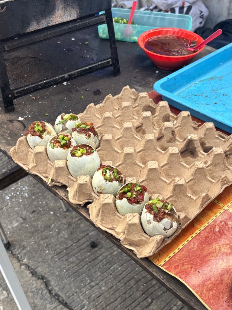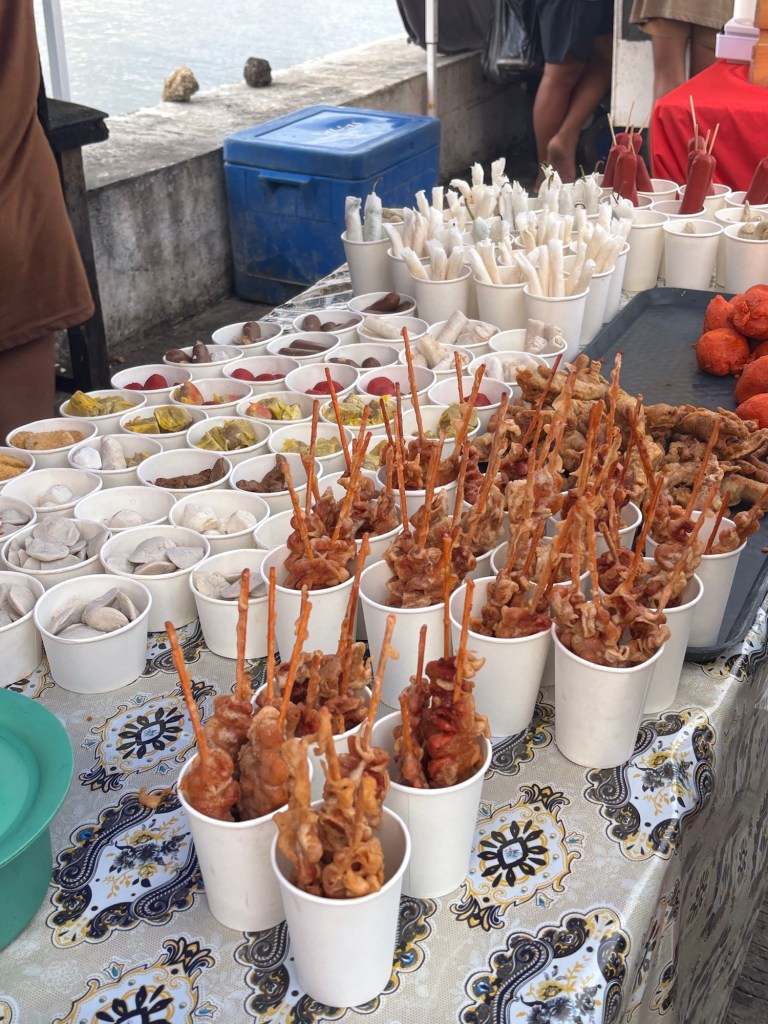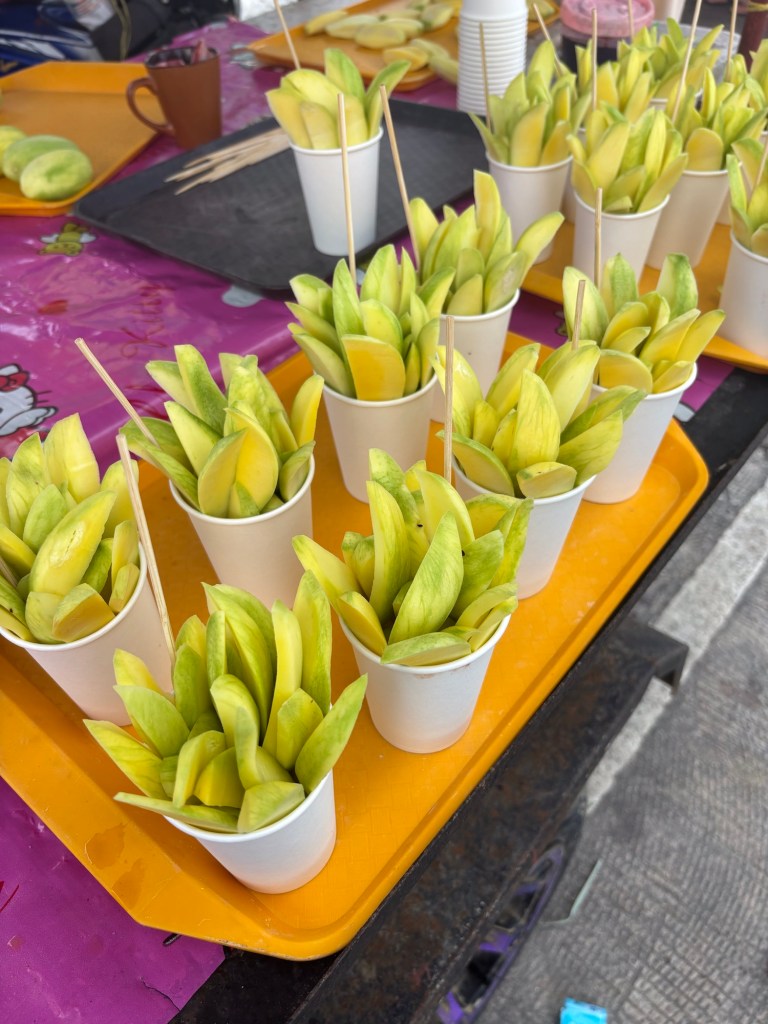 Wir haben uns an unreife Mangos herangewagt – der Rest des Streetfoods hat uns nicht so angesprochen. Die Mango war unglaublich sauer, wurde mit Salz und Chili serviert und war gleichzeitig lecker und komisch.