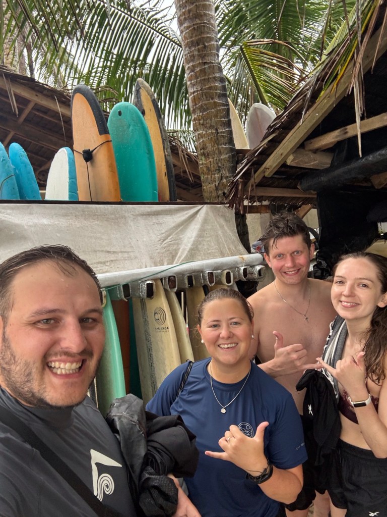Natürlich wollten auch wir dieses Gefühl mitnehmen und sind gemeinsam mit Laurine und Kilian eine Stunde lang surfen gegangen.