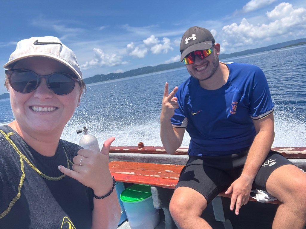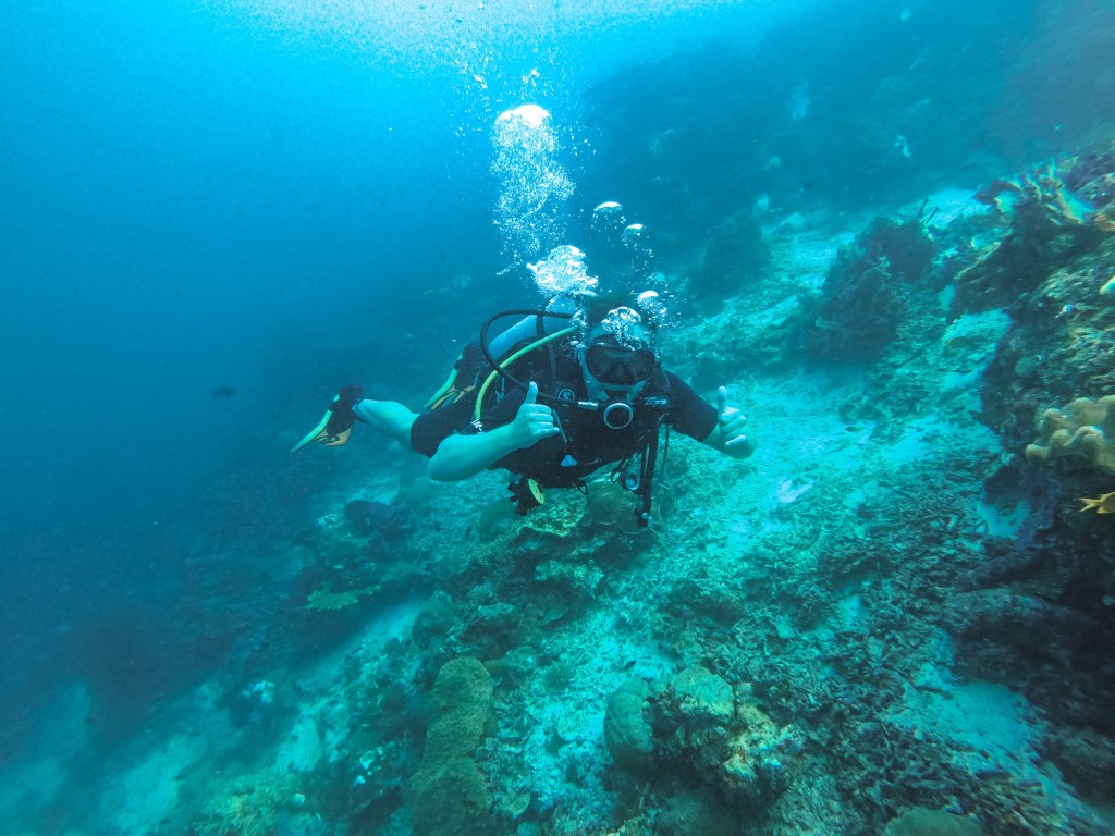 Beim ersten Tauchgang waren wir beide, wie immer, etwas nervös. Wir hatten das Glück, dass wir die einzigen im Homestay waren, die tauchen wollten und so alleine mit unserem Guide unterwegs waren.