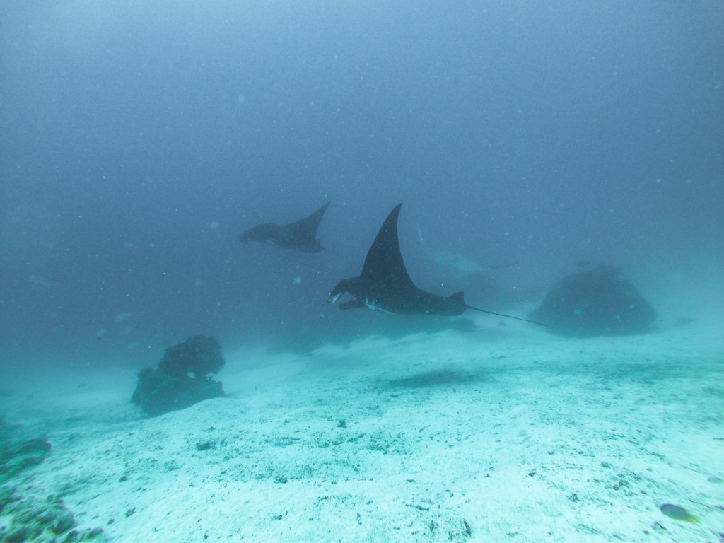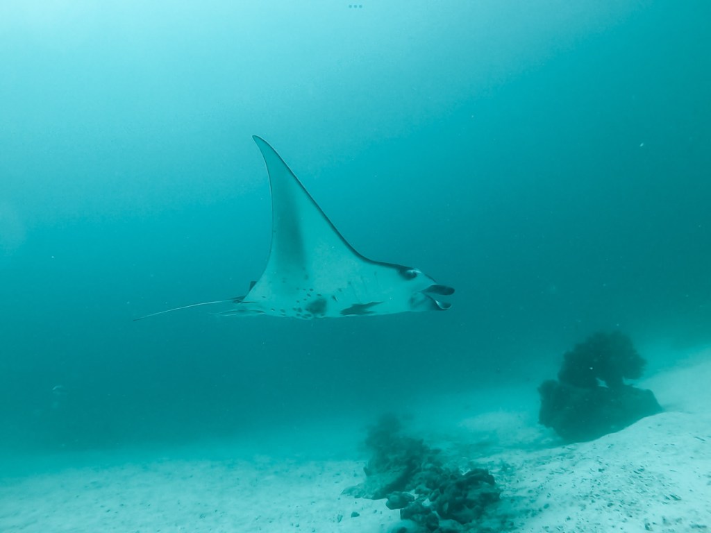 An solchen Putzerstationen muss ausreichend Abstand gehalten werden. Wenn die Tiere auf einen zuschwimmen, ist das in Ordnung, aber sie sollten nicht bedrängt werden. Mantas haben ein sehr grosses Gehirn und vergessen nicht so schnell. Wenn sie schlechte Erfahrungen mit Tauchern machen, kann es sein, dass sie diese Putzerstation meiden und sich eine neue suchen.