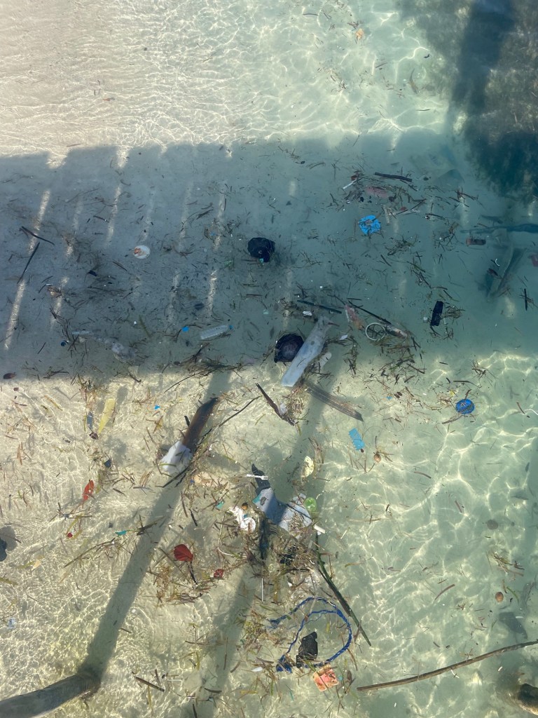 Das Abfallproblem in Indonesien und generell in den Ozeanen ist nichts Neues – leider auch nicht in Raja Ampat. Bei unseren Überfahrten zu den Inseln und beim Schnorcheln waren wir dennoch schockiert über den ganzen Müll im Wasser. Immer wieder trieben regelrechte Müllteppiche auf der Oberfläche. Bei Ebbe lag der ganze Abfall am Strand, nur um bei Flut wieder ins Meer gezogen zu werden. Selbst wenn der Müll während der Ebbe eingesammelt wird, wissen die Einheimischen nicht wirklich, was sie damit tun sollen. Er wird gesammelt und später verbrannt – mehr Möglichkeiten gibt es vor Ort nicht. Durch Wind, Regen oder die Flut landet dann jedoch vieles davon wieder im Meer.