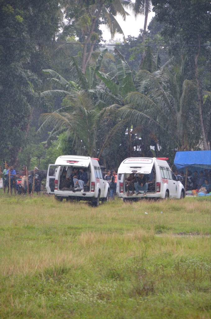 Wir sind mit einem Fahrer zum Pasola gefahren. Vor Ort wusste keiner so genau, wann die Kämpfe (heutzutage eigentlich nur noch Spiele – wir nennen sie aber trotzdem Kämpfe, da dies ja der Ursprung ist) beginnen und wo genau sie am Strand stattfinden.