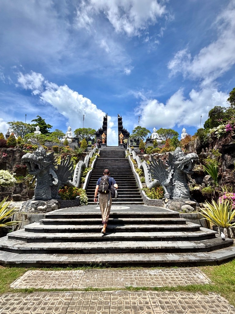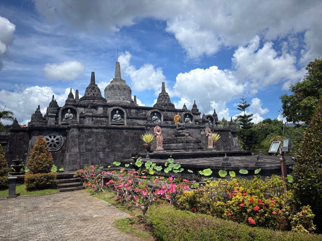 Nach drei Nächten in Westbali sind wir der Küste weiter entlang gefahren und haben noch einen buddhistischen Tempel besucht. Die Mischung zwischen Buddhismus und Hinduismus war doch sehr aussergewöhnlich.