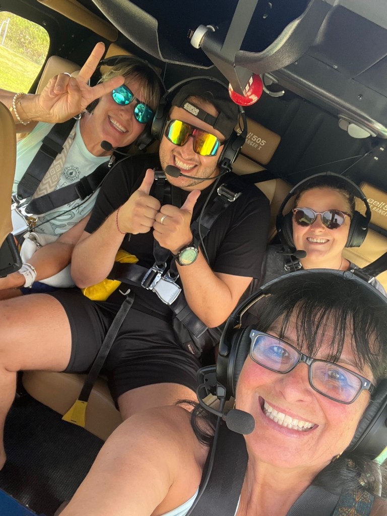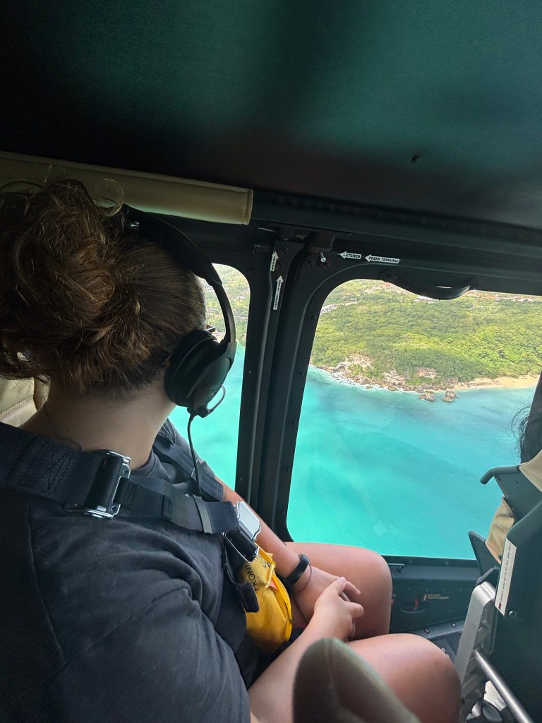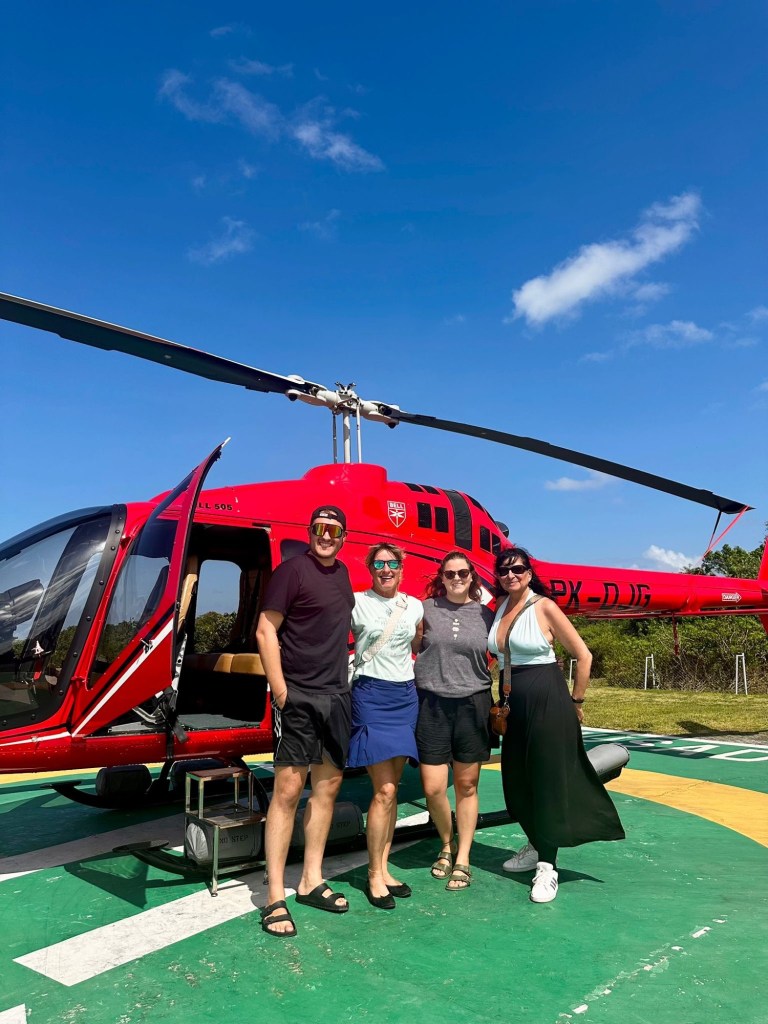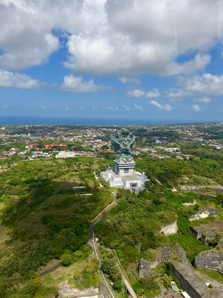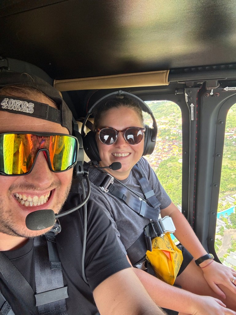 Philippe und ich wollten unbedingt die Küste von Bali aus dem Helikopter erleben – und haben Anita und Sabine kurzerhand dafür mit angemeldet. Der Flug war einfach traumhaft! Wir konnten die viertgrösste Statue der Welt auf Augenhöhe sehen und die steilen Klippen im Süden Balis bestaunen.
