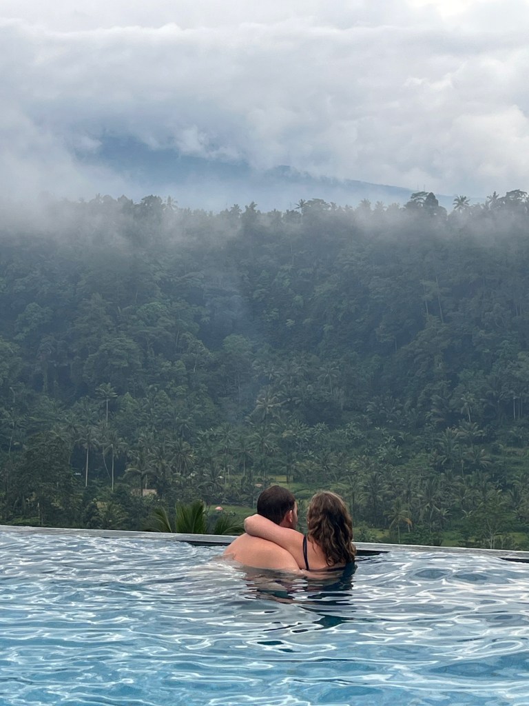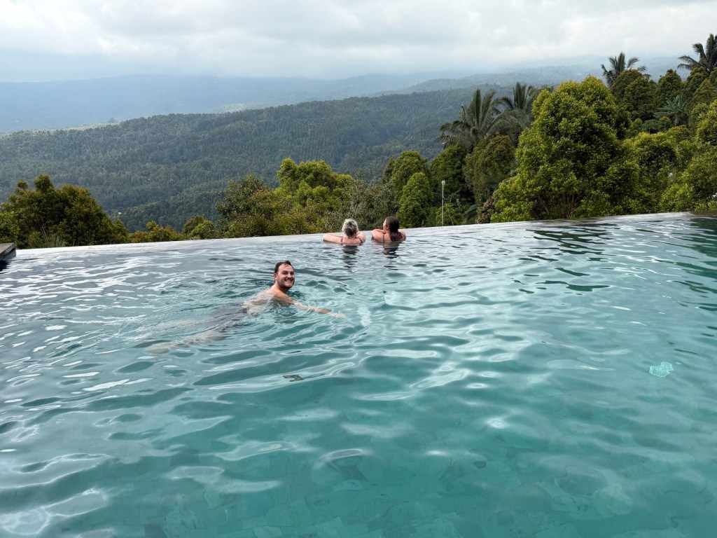 Die Reise führte für Mami und Peter weiter in den Nordwesten von Bali, während wir in den Süden zurückkehrten. Nach drei Nächten getrennt trafen wir uns jedoch bereits wieder in Munduk. Munduk liegt eingebettet in den Bergen und ist besonders bei Wanderern beliebt. Leider war das Wetter nicht optimal, und wir waren nicht besonders motiviert – also verbrachten wir den gesamten Tag am Pool unserer Unterkunft in traumhafter Kulisse.