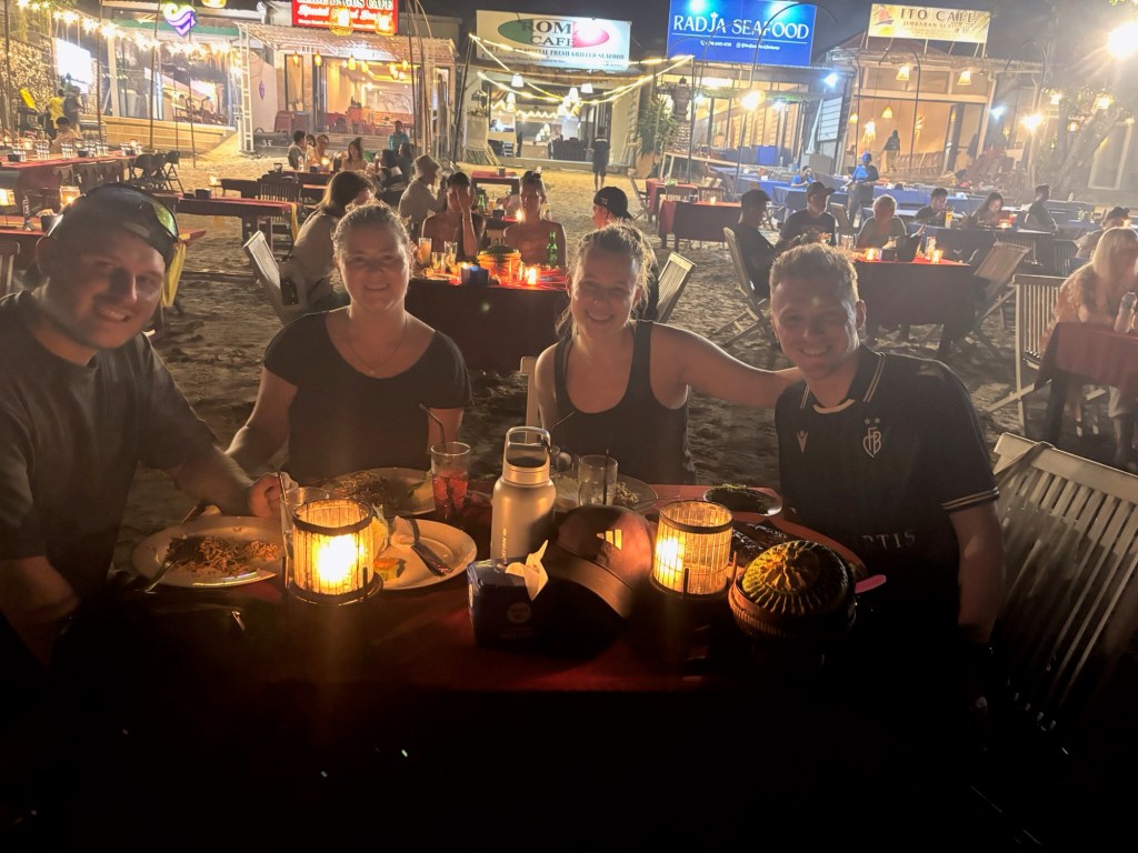 Die ersten Nächte wohnten sie in unserer Nähe in einem Hotel direkt am Strand. Den letzten Abend von Isabelle und Silvan haben wir gemeinsam mit Mami und Peter am Strand verbracht.