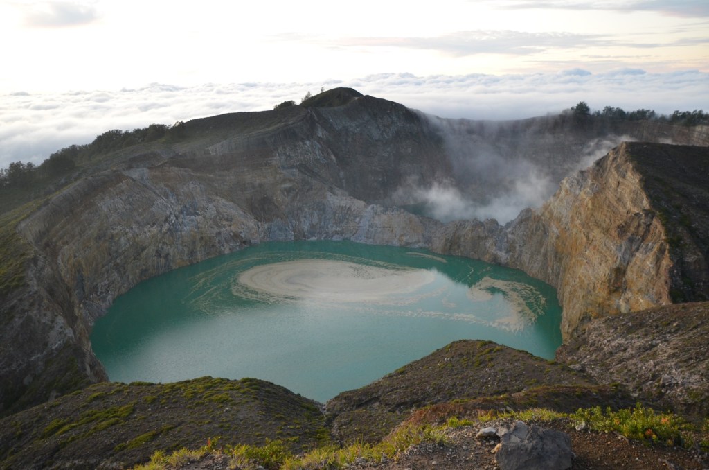 Leider zog die Sicht immer mehr zu. Die meisten Touristen verliessen den Gipfel kurz nach Sonnenaufgang. Viele machen nur einen kurzen Stopp in Moni und fahren danach direkt weiter nach Maumere.