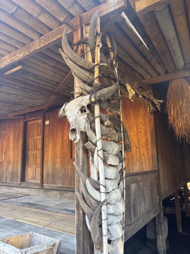 Für den Besuch zahlten wir unserer Meinung nach einen überteuerten Eintritt und wurden mit einem Sarong ausgestattet. Danach wurden wir zu einer kleinen Zeremonie eingeladen, bei der ein Einheimischer in seiner Sprache für uns und das Dorf betete. Das war’s dann aber auch schon. Die Häuser waren zwar spannend zum Anschauen, aber viel mehr Informationen gab es nicht.