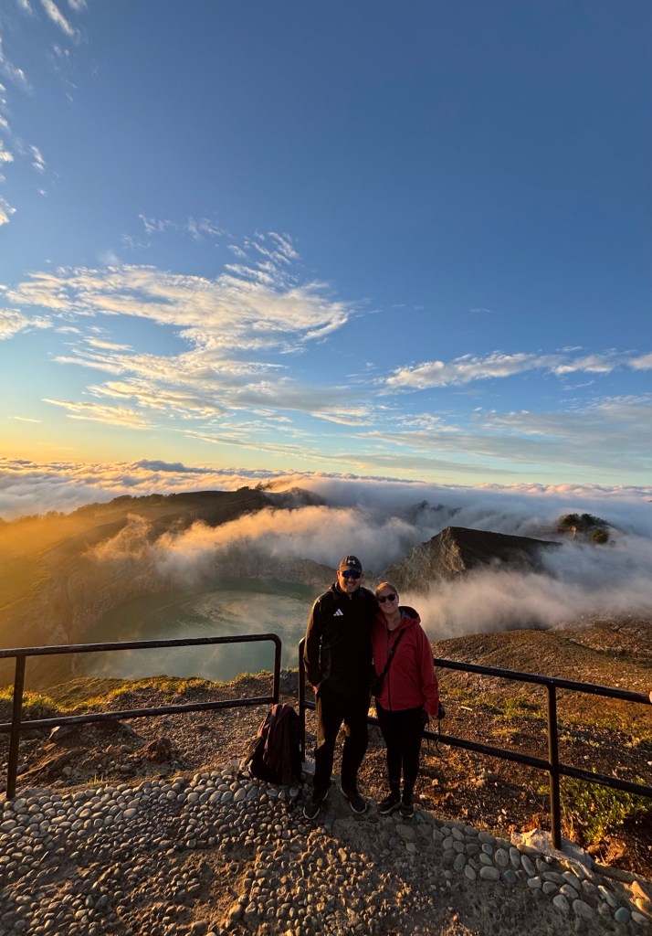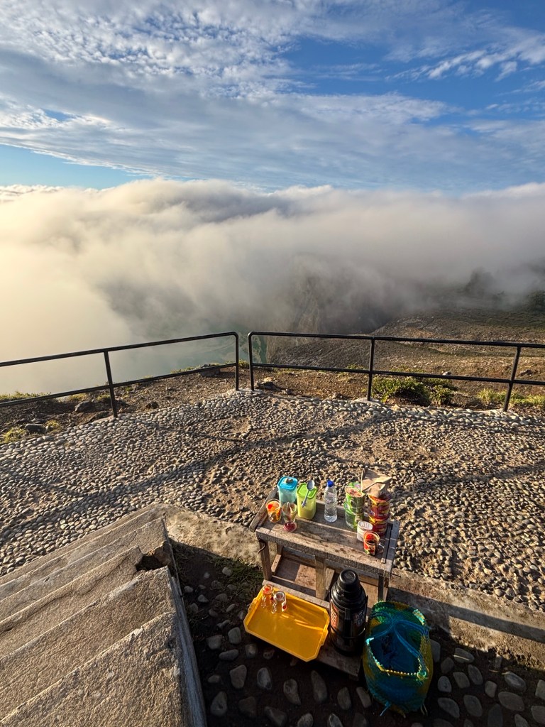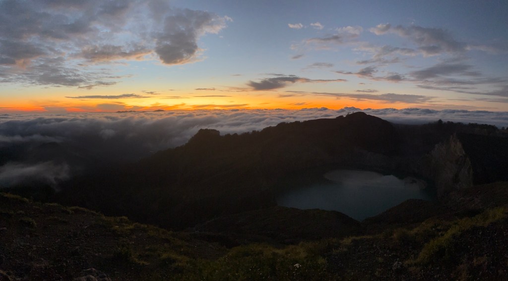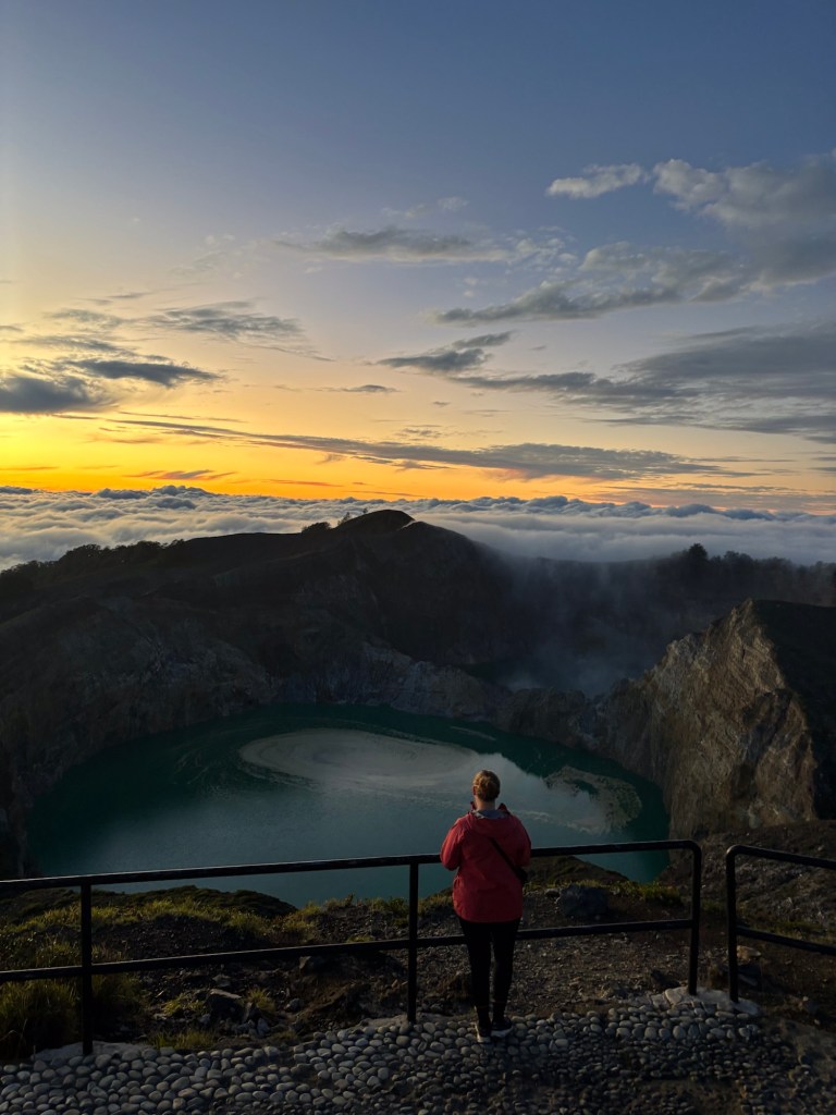 Wir sind um 4:30 Uhr mit dem Roller vom Homestay losgefahren – etwa 30 Minuten bis zum Ausgangspunkt der Kraterseen. Vom Parkplatz aus geht es über einen gemachten Weg zum Aussichtspunkt. Wie die meisten Touristen planten wir den Besuch zum Sonnenaufgang – und wurden nicht enttäuscht: Die Sicht und das Licht waren traumhaft.