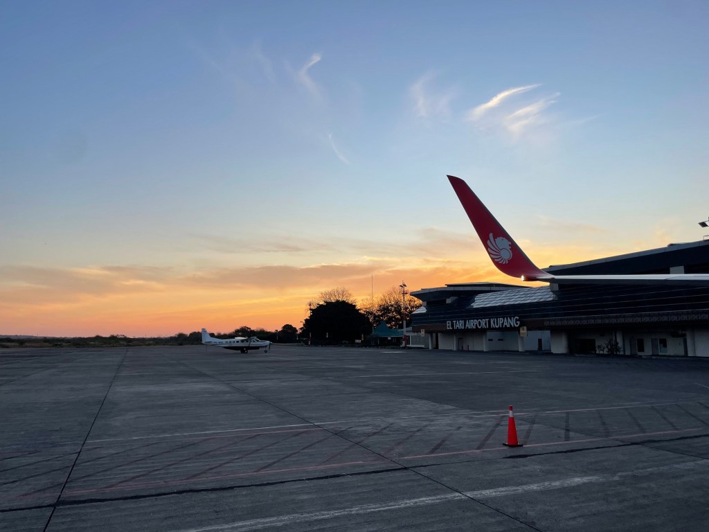Jetzt sitzen wir am Flughafen in Kupang und warten auf unseren Weiterflug. Verabschiedet wurden wmit einem schönen Sonnenuntergang.