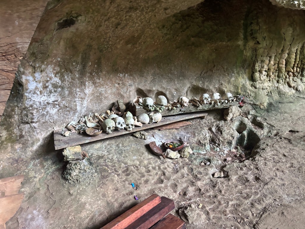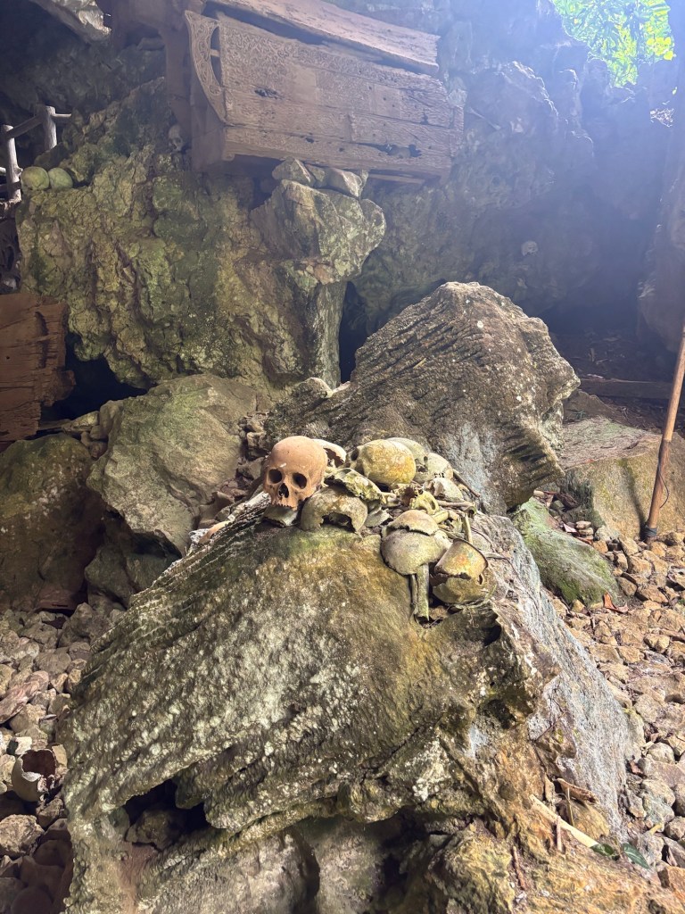 Eine schwierige Vorstellung für uns, dass das echte Knochen sind von Menschen, die vor einiger Zeit da gelebt haben und wir einfach hindurchspazieren können. Da in der Toraja-Kultur der Bezug zum Tod aber ganz ein anderer ist, sehen sie das nicht als etwas Schlechtes an, sondern sind stolz, ihre Kultur und somit auch die Gräber zeigen zu können.