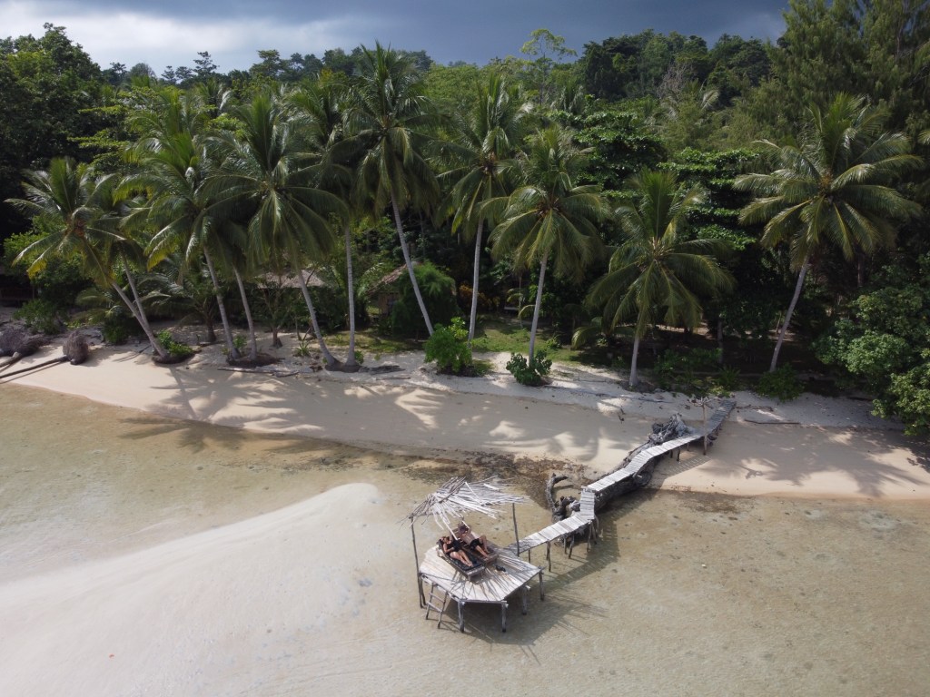 Der erste Halt für uns war die kleine Insel Poyalisa. Nach einer Stunde Fahrt konnten wir direkt mit dem Speedboot beim ersten Homestay abgeladen werden, was es zu einem guten Startpunkt gemacht hat. Auf dieser kleinen Insel haben wir drei Nächte verbracht und wollten zuerst einmal einfach nur entspannen. Die kleinen Bungalows auf dem Felsen boten sich dafür optimal an. In der Hängematte direkt bei unserem Zuhause mit Aussicht auf das Meer unter uns lässt es sich definitiv gut entspannen.
