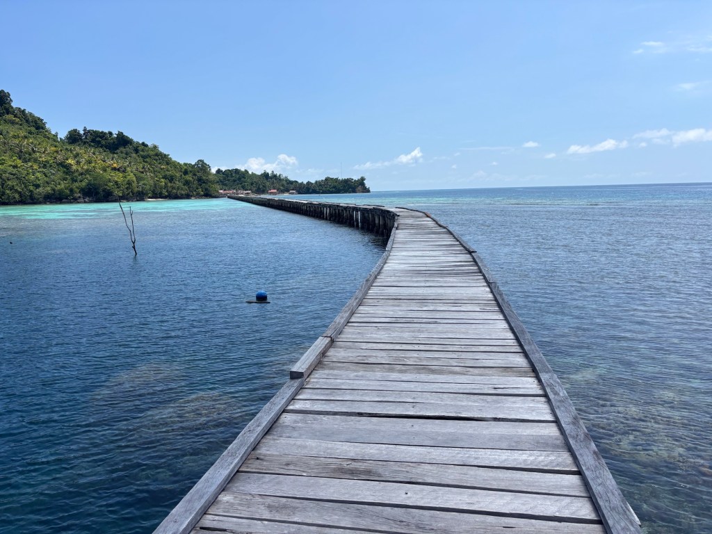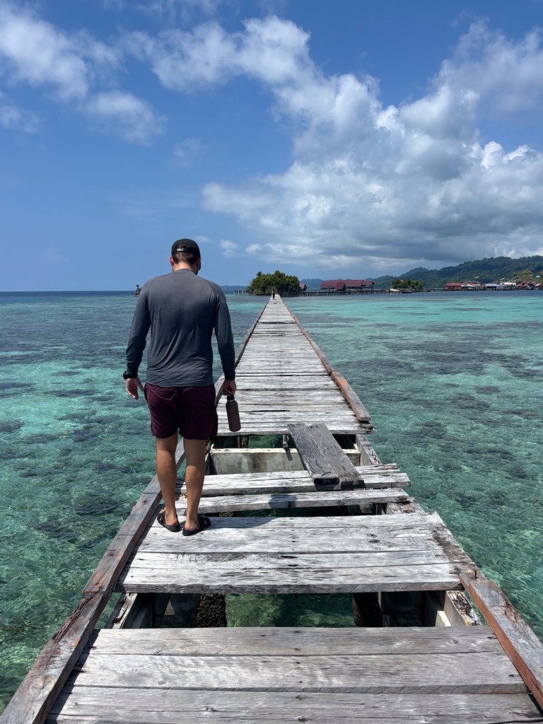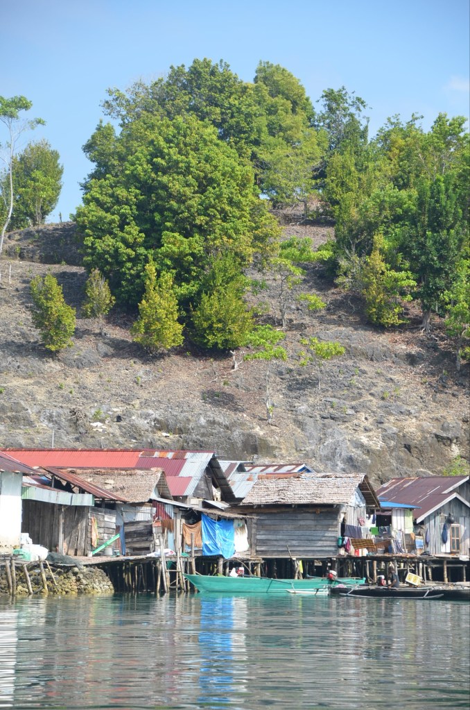 In den Togean-Inseln lassen sich einige Dörfer des Bajau-Volks auffinden und besuchen. Direkt gegenüber von unserem letzten Homestay war das bekannte Dorf Pulau Papan. Wir konnten zu Fuss durch den Dschungel und über den ewig langen Steg das Dorf erreichen. Dieser ist nicht mehr im besten Zustand und benötigt doch einiges an Konzentration beim Laufen.