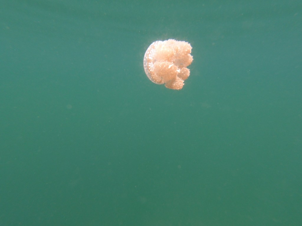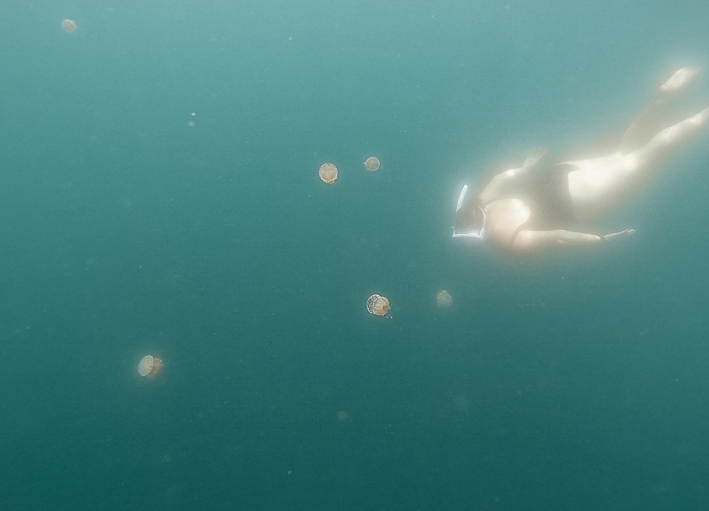 Auf dem Weg dorthin konnten wir noch einen Zwischenstopp an einem der bekanntesten Orte der Togean-Inseln, dem Quallensee, machen. In einem natürlich entstandenen Salzwassersee schwimmen Tausende von nichtnesselnden Quallen. Diese haben sich über die Jahre so verändert, dass sie nicht gefährlich sind und problemlos mit ihnen geschwommen werden kann. Ein komisches, aber tolles Erlebnis, umgeben von Quallen zu sein.