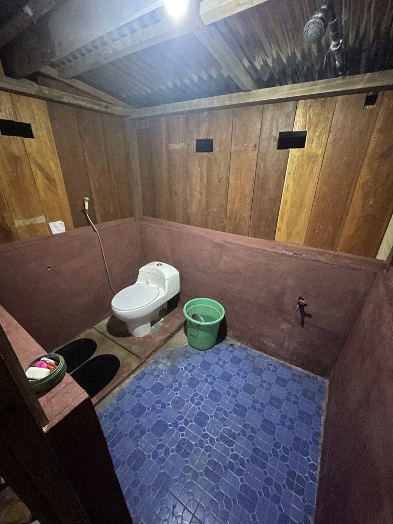 Die Zimmer sind mit einem Bett inklusive Moskitonetz ausgestattet. Das Bad hat ein WC mit normaler Spülung oder einem Kessel zum Wasserschöpfen und einer einfachen, häufig sehr schwachen Dusche mit leider teilweise auch Salzwasser.