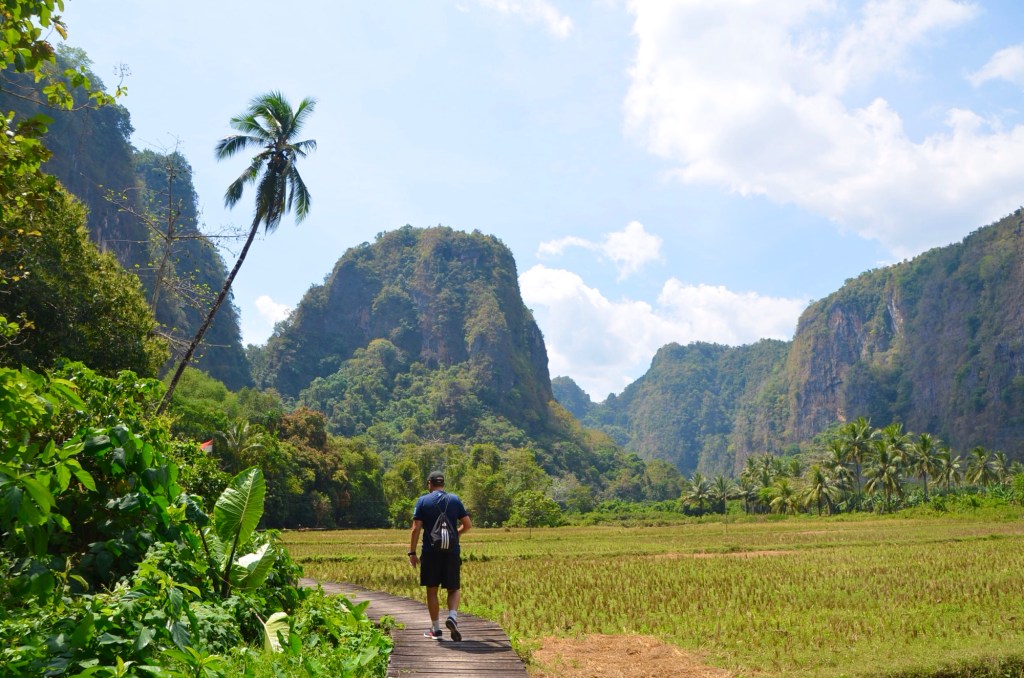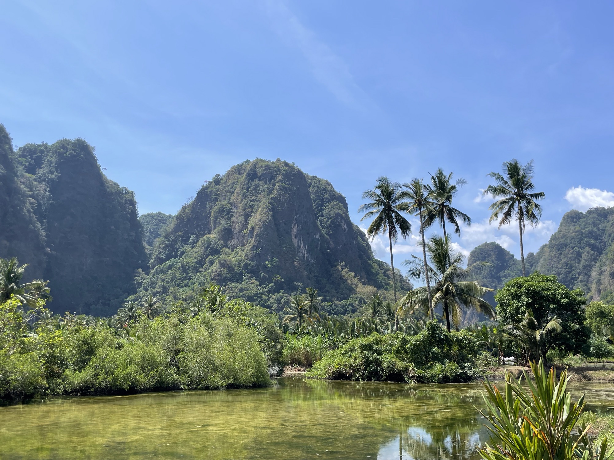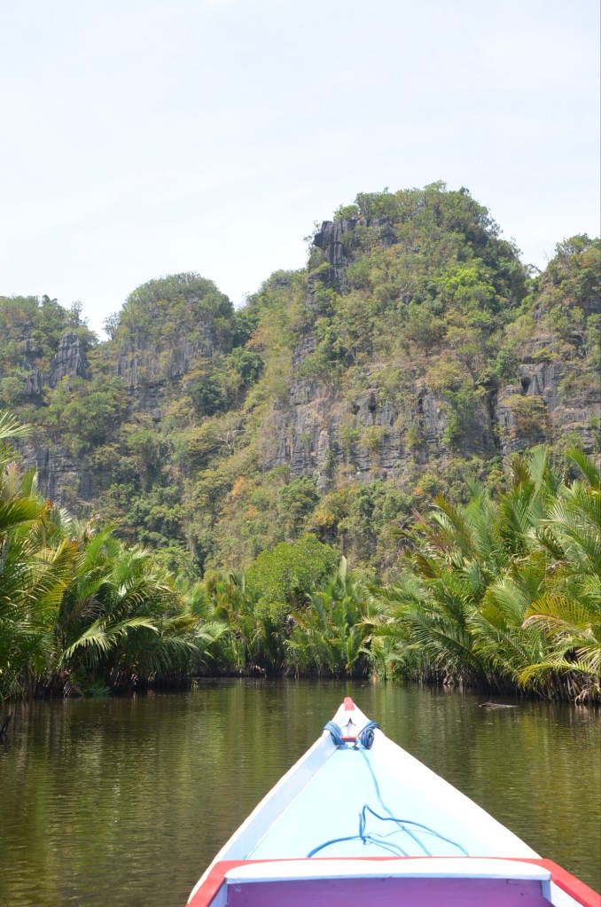 Ca. 1,5 Stunden ausserhalb von Makassar liegt das Gebiet Rammang Rammang, welches bekannt ist für seine schönen Landschaften. Aus der eher flachen Gegend ragen hohe Felsen heraus.