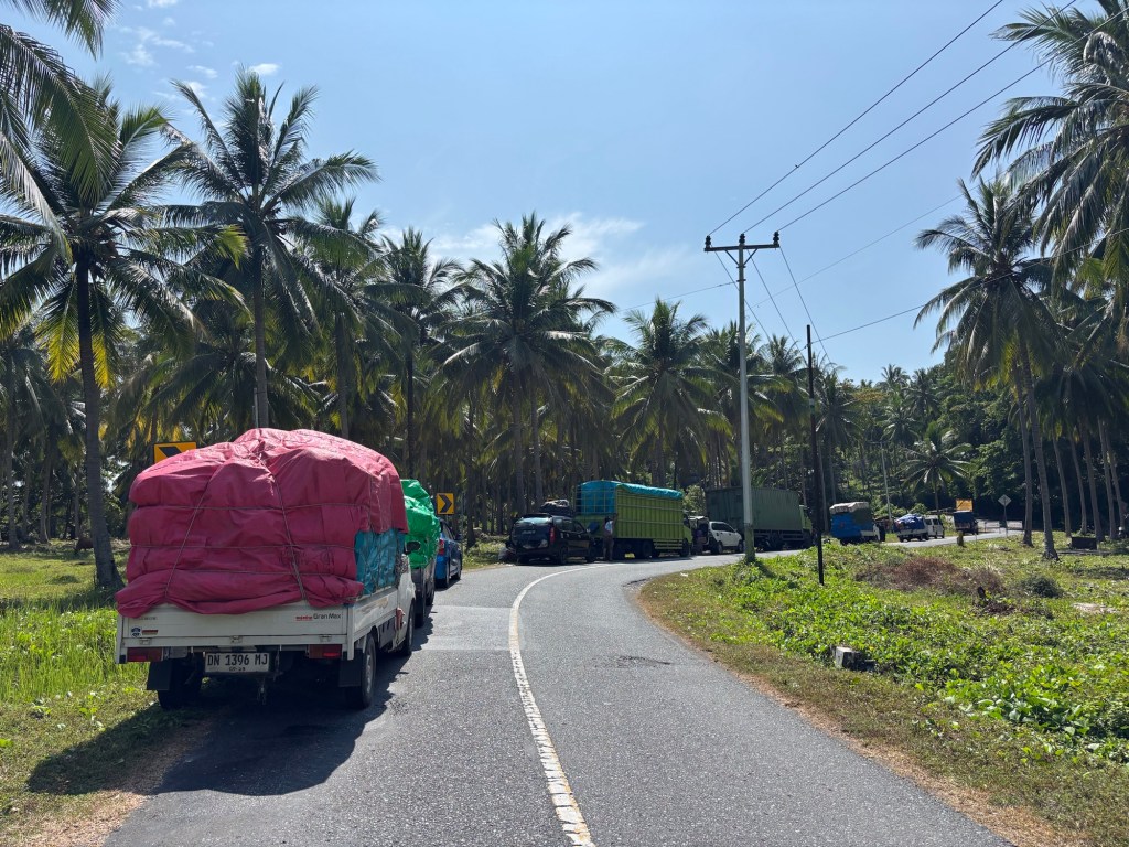 So ging es um 8 Uhr los – leider nur für ca. eine Stunde. Wir kennen es ja schon von Flores, dass in Indonesien Strassen ohne Ankündigung teilweise geschlossen werden. Wir haben später beim Durchfahren gesehen, dass es auch da einen Erdrutsch gegeben hatte, und dies erst vor kurzem. Wir wissen nicht, ob es mit einem Erdbeben zusammenhing, welches während unserer Zeit auf den Togean-Inseln in Nord-Sulawesi stattfand.