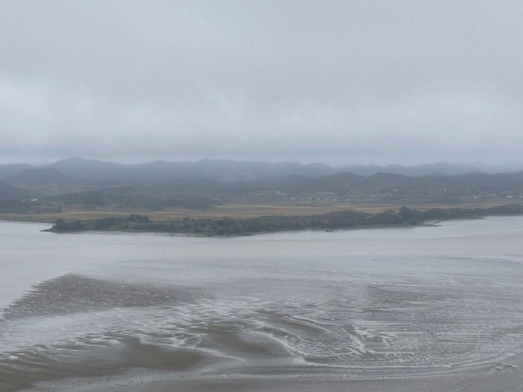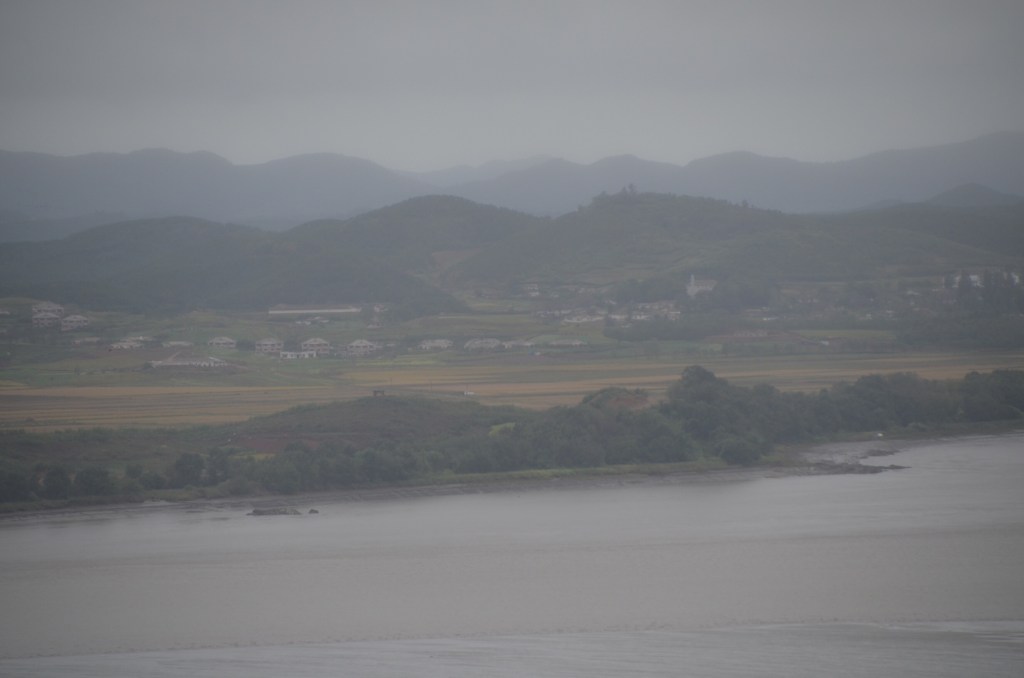 Auch wenn das Wetter an diesem Tag eher schlecht war und die Sicht eingeschränkt blieb, konnten wir immerhin einen Blick auf das Land werfen. Entlang der Grenze wurden Propagandastädte errichtet– Siedlungen, die bewohnt aussehen, in denen aber keine Menschen leben.