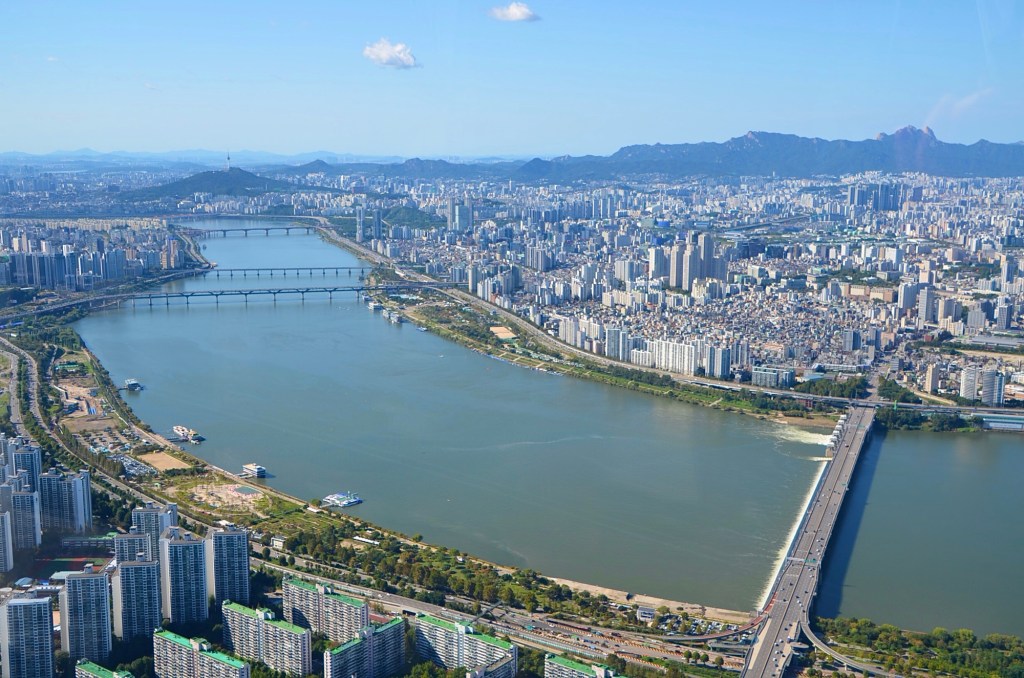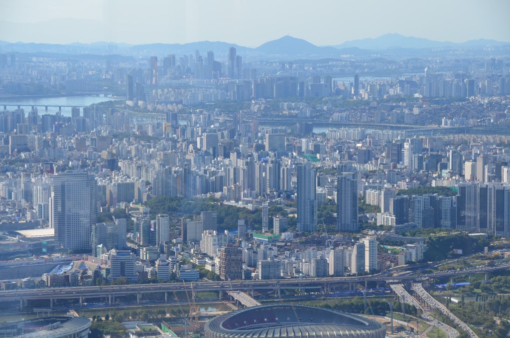 Gestartet sind wir beim Lotte World Tower, dem sechsthöchsten Gebäude der Welt, das eine beeindruckende Aussicht über die ganze Stadt bietet. Dass wir am schönsten Tag während der Feiertage lange anstehen müssen, war uns klar. So fuhren wir etwa eine Stunde nach Ankunft beim Turm in den 117. Stock. Es gibt zwei kleine Aussenterrassen, den Rest der Aussicht bewunderten wir von innen – was bei dem tollen Wetter natürlich etwas schade war. Dennoch war der Blick atemberaubend. Erst durch solche Aussichtspunkte wird einem bewusst, wie riesig diese Stadt eigentlich ist.