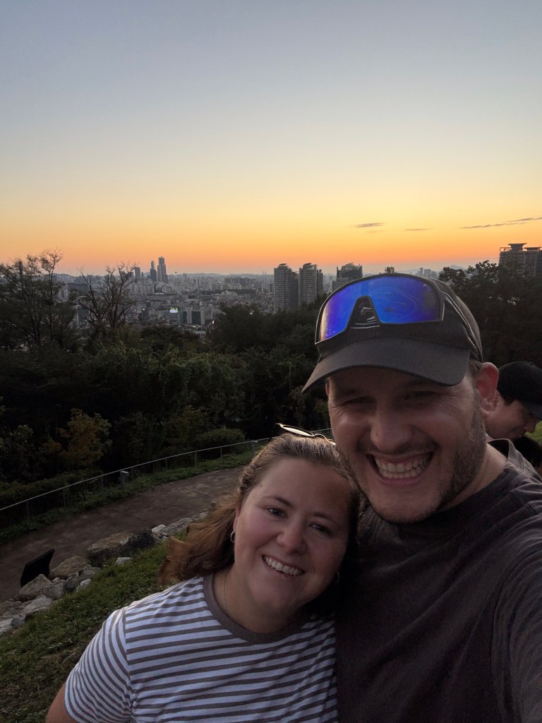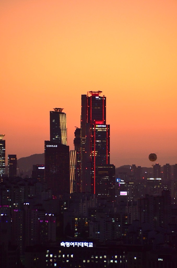 Das Wetter meinte es gut mit uns und schenkte uns ein letztes Highlight zum Abschied aus Südkorea: einen traumhaften Sonnenuntergang über der Stadt.