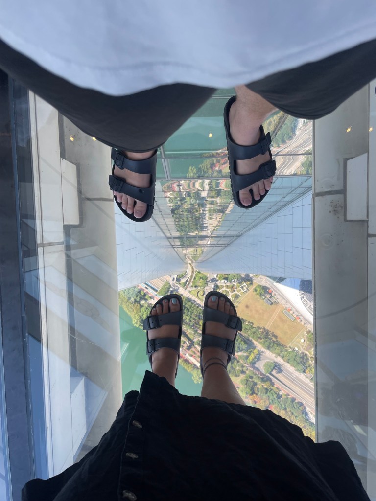 Da wir zeitlich etwas knapp dran waren und vom langen Tag bereits ziemlich müde, wollten wir es dem Zufall überlassen, ob bei der Gondel viel los war. Das Ende der Schlange konnten wir gar nicht erst finden – also entschieden wir uns schnell dagegen. Den kompletten Weg zu Fuss hochzugehen wollten wir auch nicht mehr, daher stoppten wir an einer Stelle auf halbem Weg, die bereits eine grossartige Aussicht bot.