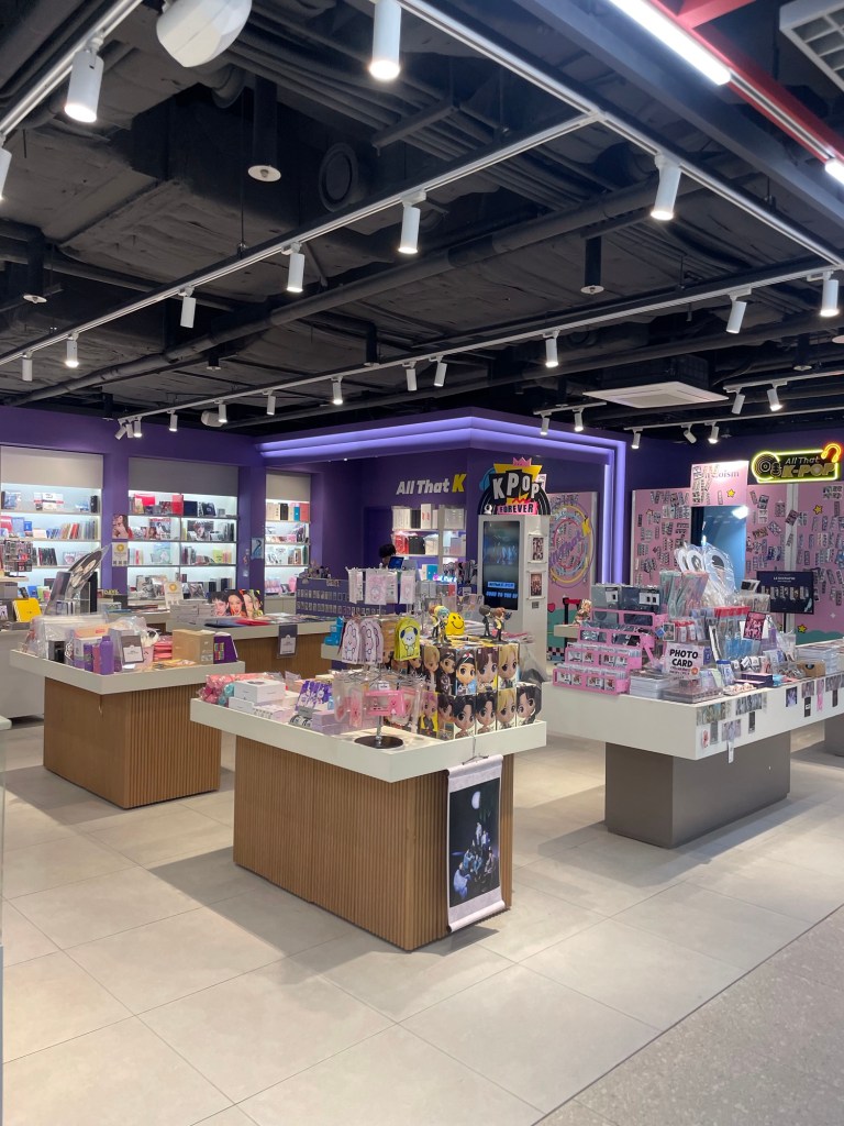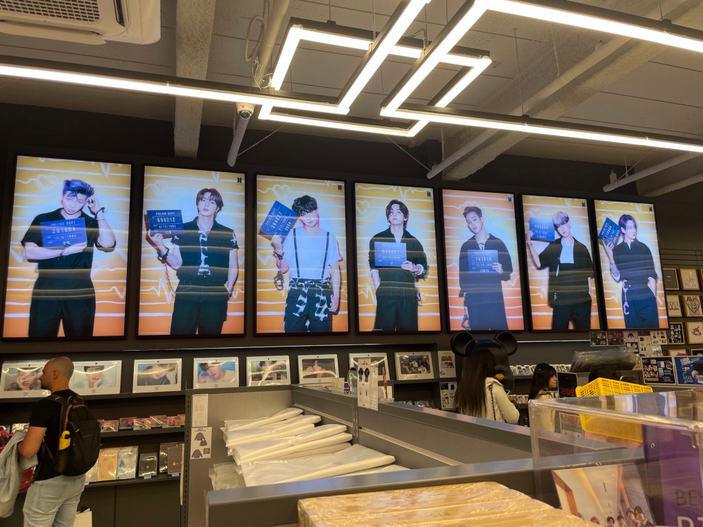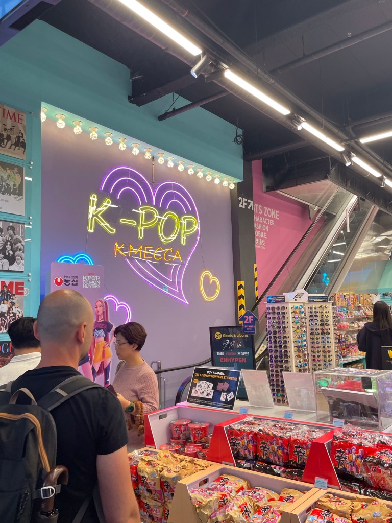 Ein paar K-Pop-Songs durften natürlich auch nicht fehlen. Für alle, die gerade nicht wissen, was K-Pop überhaupt bedeutet, hier eine kurze Erklärung: Als K-Pop wird die Musikszene aus Korea bezeichnet, die über die Jahre immer mehr Ansehen in der ganzen Welt erhalten hat. Dabei geht es nicht nur um die Musik selbst, sondern das gesamte Paket mit Tanz, Mode und Show. Aus diesem Grund wurde es auch vor allem durch Social Media so gross. Ganz weit vorne mit dabei sind die Gruppen Blackpink und BTS, wobei es in Korea unendlich viele solche Gruppen gibt, die aber nicht alle den Sprung auf die Weltbühne gleich gut geschafft haben. In Südkorea gibt es an jeder Ecke Fanartikel zu kaufen, vor allem in Seoul ganze K-Pop-Läden.