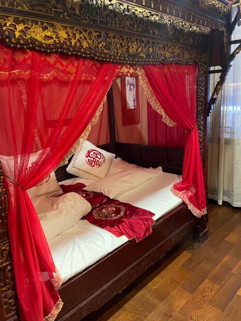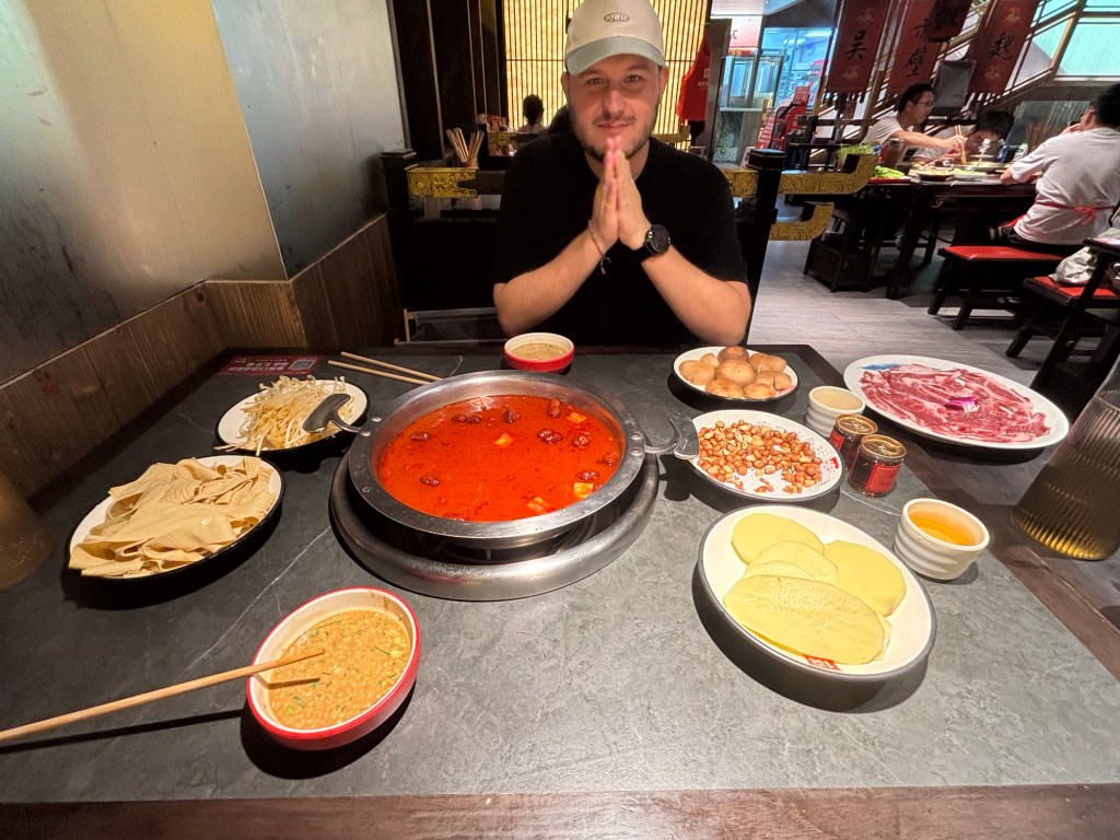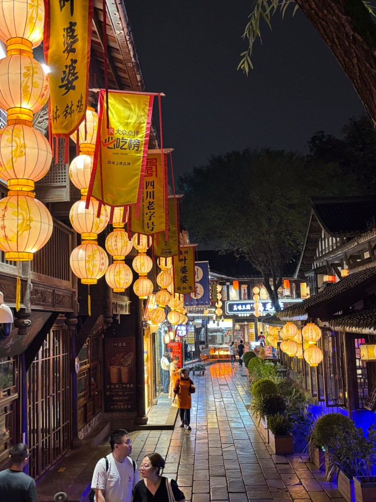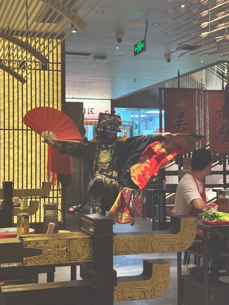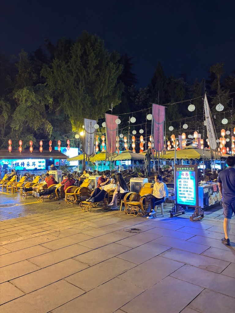 Unser Hotel war in einer sehr schönen Lage. Wir hatten gute Restaurants in der gleichen Strasse und ein paar Gehminuten entfernt ein kleines, traditionelles Viertel. Wir gingen lecker Hotpot essen, inklusive einer kurzen Aufführung des typischen Maskentanzes in Chengdu, bei dem die Masken im Gesicht ständig unauffällig gewechselt werden. Wir schlenderten gemütlich durch die kleinen, mit Lampions verzierten Gassen und fühlten uns direkt wieder angekommen in China.
