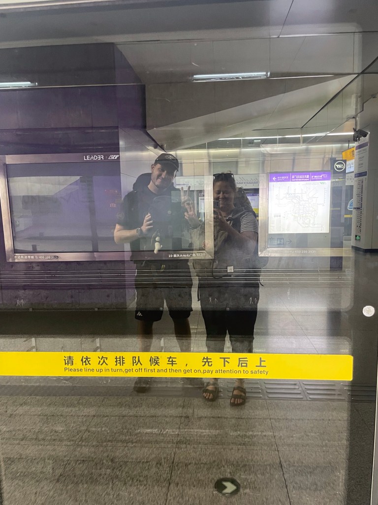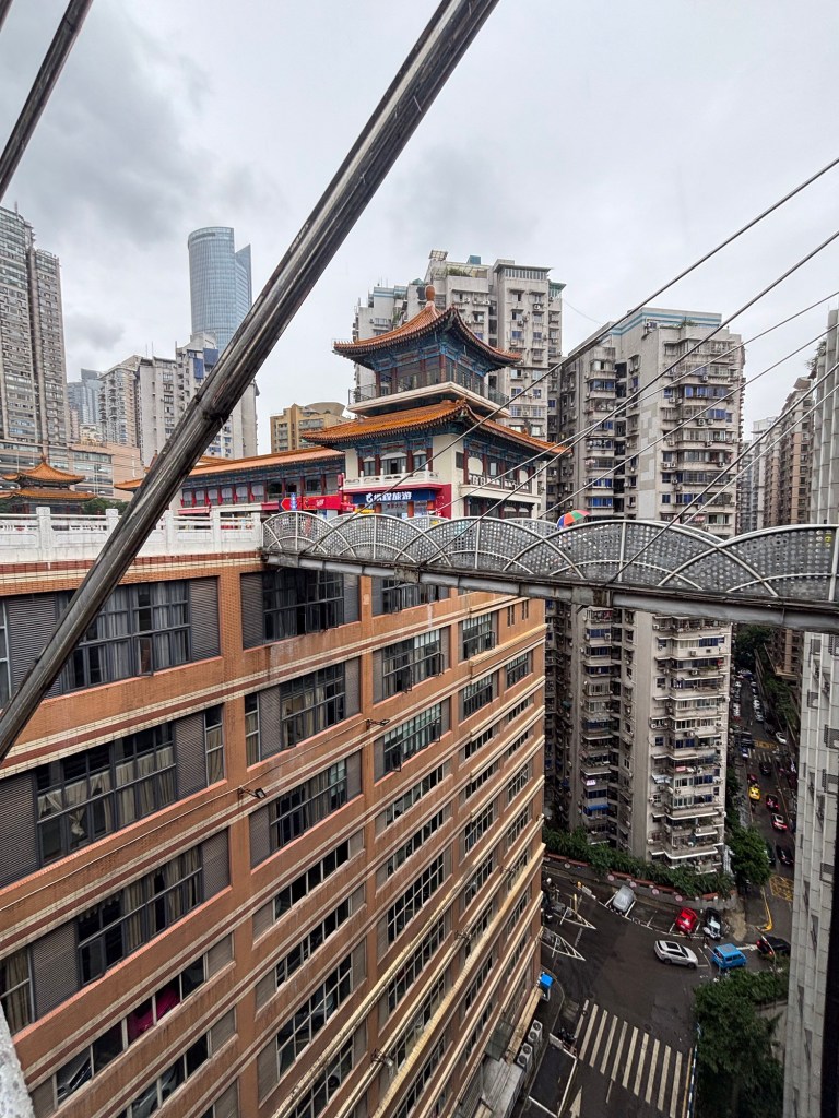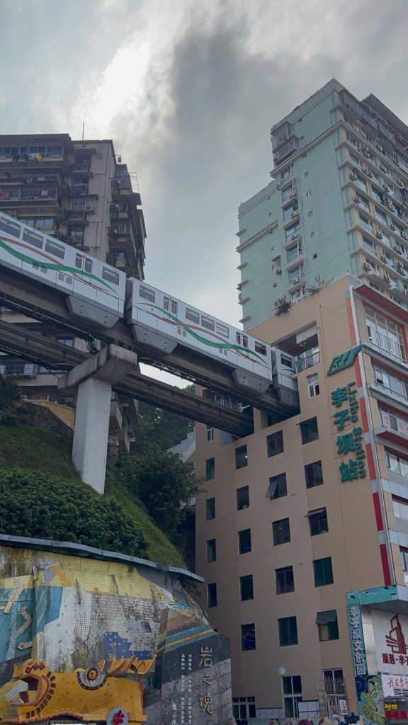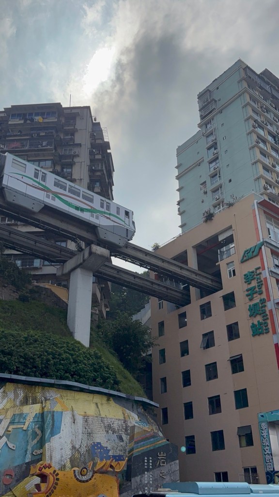 Ein weiterer spannender Punkt ist, dass in dieser Stadt eine U-Bahn durch ein bewohntes Gebäude fährt. Was zuerst da war, wissen wir nicht, aber es ist eine Sehenswürdigkeit, die sicher ein typisches Motiv von Chongqing darstellt und viele Touristen anzieht.