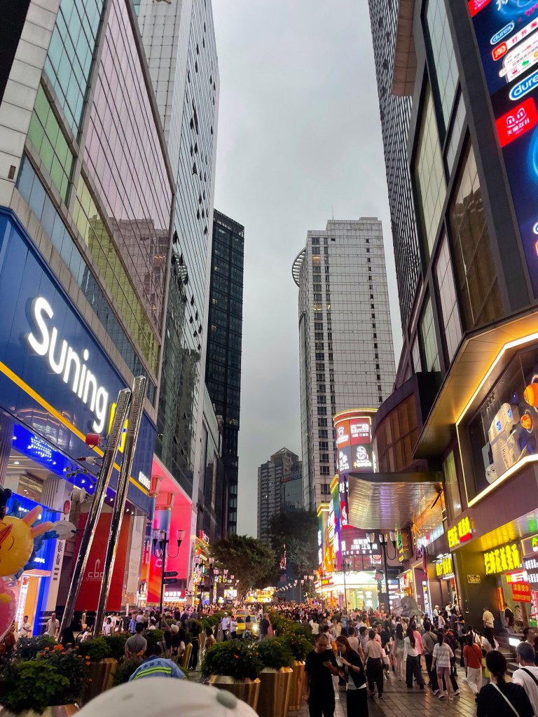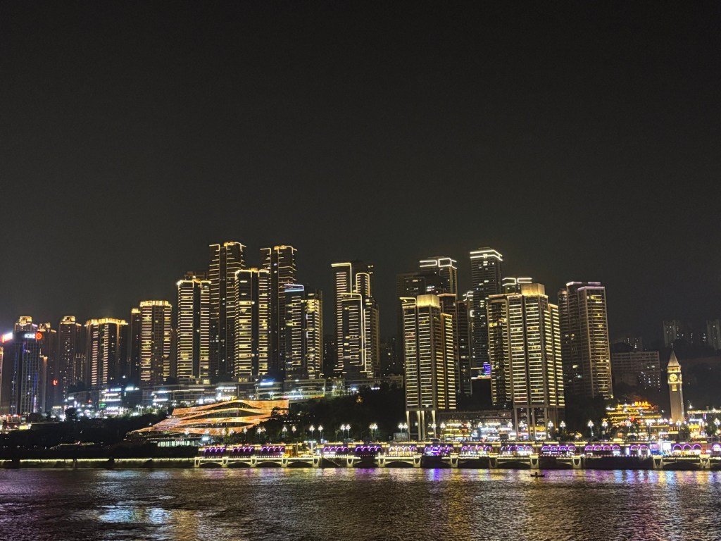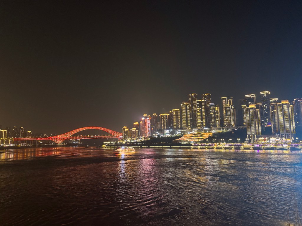 Auch bekannt ist Chongqing für ihre grosse Drohnenshow, die immer samstagabends stattfinden soll. Natürlich gingen wir überpünktlich, um eine gute Sicht auf die Show zu haben. Im Wasser befanden sich Jetskifahrer, die vorher nicht da waren, und die grossen Schiffe durften kurz vor 21 Uhr nicht mehr durchfahren – alles deutete darauf hin, dass die Show bald starten sollte. Als dann um Punkt 21 Uhr nichts passierte und eine Minute später die Boote wieder durchfuhren, war klar, dass die Show aus irgendeinem Grund nicht stattfand. Die Enttäuschung war gross, aber die Sicht auf die Skyline von Chongqing bei Nacht war auch sehr eindrucksvoll.