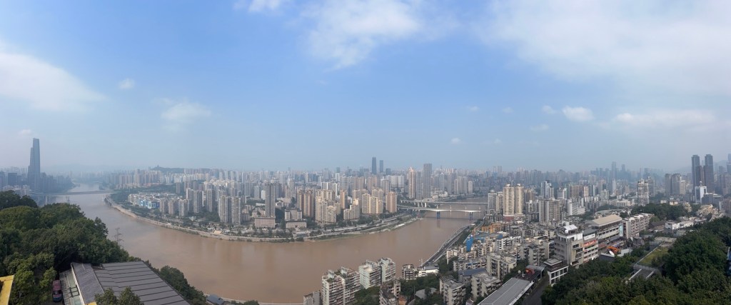 Chongqing ist, wenn nicht nur das Stadtzentrum, sondern alles dazugehörige mitgerechnet wird, flächenmässig die grösste Stadt der Welt, was wir bei der Zugfahrt bemerkt haben. Soweit das Auge reichte, sahen wir nur Stadt, und alles sah für uns irgendwie nach dem Stadtzentrum aus, obwohl es nur das Umland war.