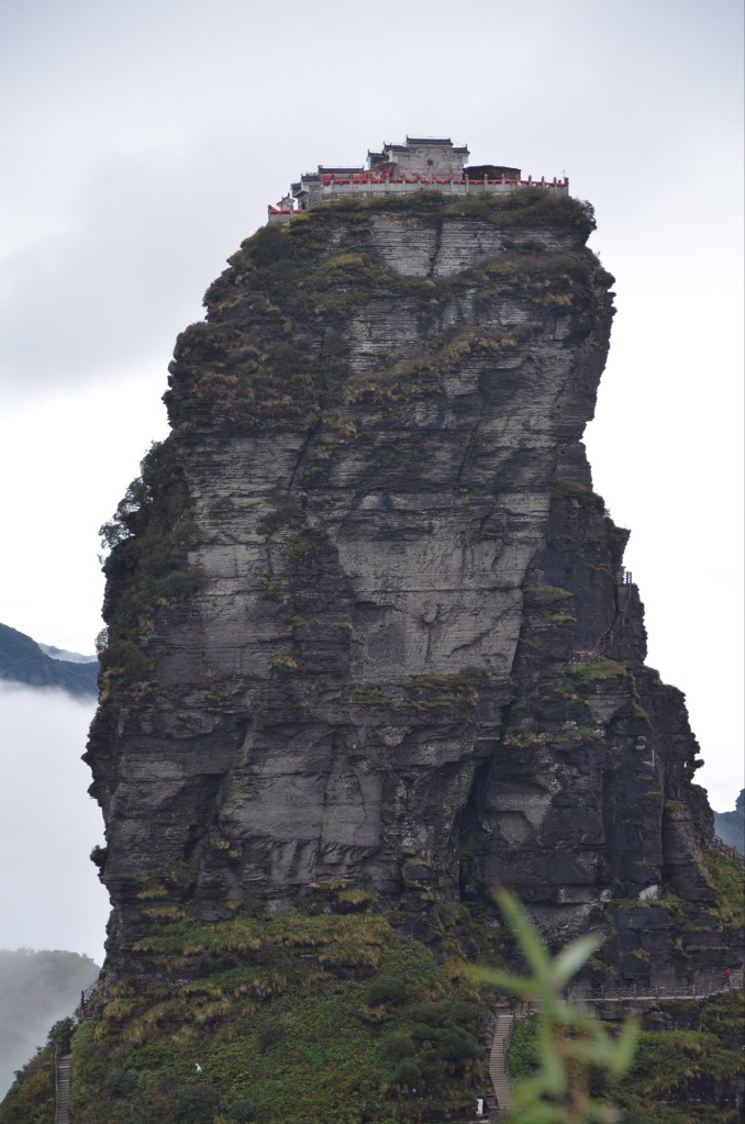 Beim Fanjing Shan gibt es drei zentrale Aussichtspunkte. Unser Weg führte uns als erstes zum Mushroom Rock, einer Felsformation, die an einen Pilz erinnern soll. Wir hätten die Form jetzt nicht so gedeutet, aber eine spannende Felsformation war es trotzdem.