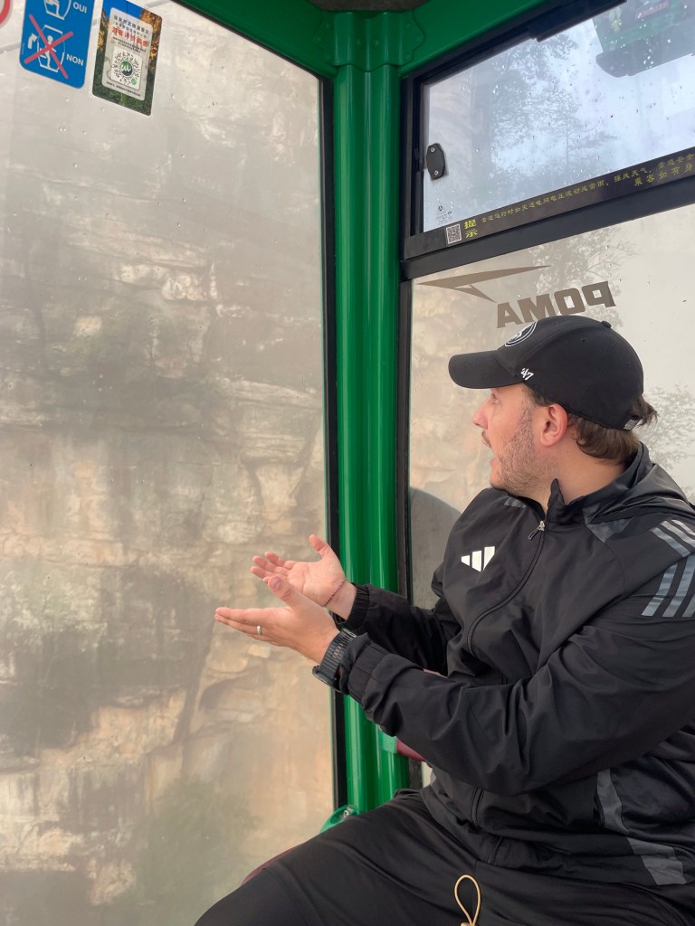 Ohne anstehen zu müssen, konnten wir direkt den Shuttlebus zum Aufzug nehmen. Der Aufzug, der entlang einer Felswand gebaut wurde, ist der längste Glasaufzug der Welt und bot uns bereits die erste spektakuläre Aussicht auf die Landschaft.
