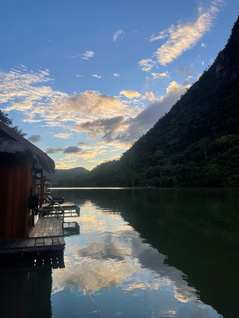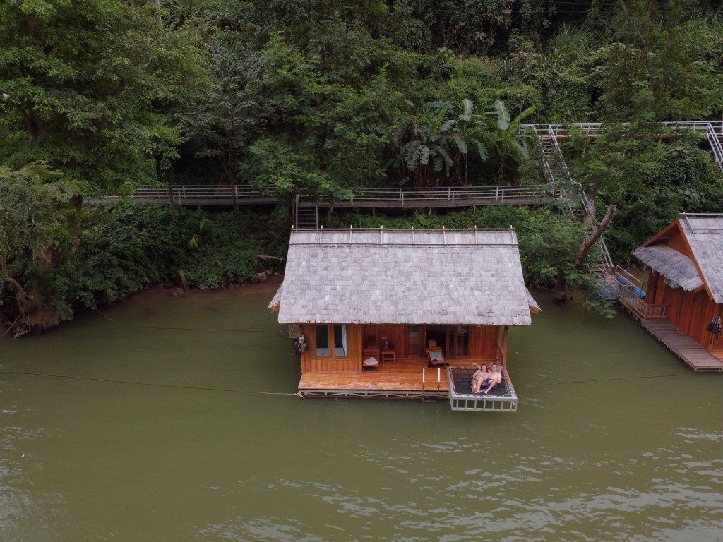 Wir hatten uns für die Zeit vor Ort wieder einmal eine traumhafte Unterkunft gebucht – etwas ausserhalb des Ortes, direkt am Fluss gelegen. Oder besser gesagt: im Fluss. Es waren schwimmende Hütten.