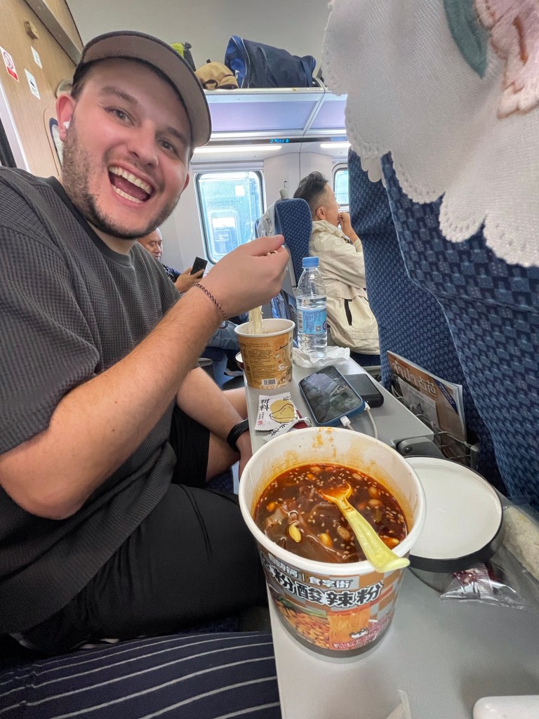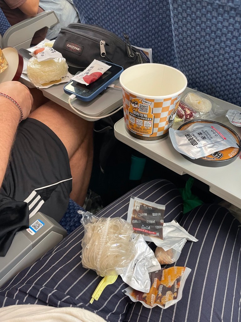 Wir haben China in Kunming verlassen und sind mit dem Zug acht Stunden bis nach Luang Prabang in Laos gefahren. Wir hatten uns mit genügend Snacks eingedeckt und – da es in den Zügen immer heisses Wasser gibt – auch Nudelsuppen zum Selbstanmischen dabei.