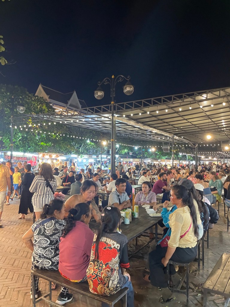 Unser erster Stopp in Laos war der touristische Ort Luang Prabang. Obwohl der Tourismus in Laos langsam zunimmt, war bei uns trotzdem noch sehr wenig los. Das absolute Highlight in Luang Prabang ist der Nachtmarkt, der jeden Tag stattfindet.