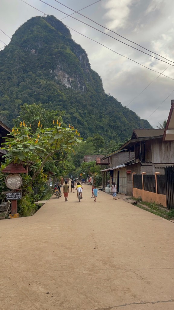 Viel mehr haben wir in Muang Ngoi ehrlich gesagt auch nicht gemacht. Wir sind viel herumspaziert, auch etwas ausserhalb des Dorfes, und haben die Zeit auf der Terrasse des Restaurants beim Spielen genossen.
