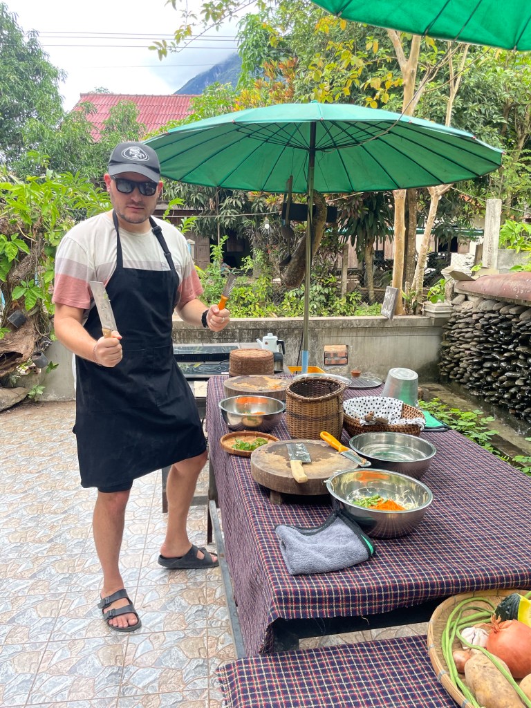 Beim Schlendern durch die Hauptstrasse– und so ziemlich die einzige Strasse im Ort – entdeckten wir das Schild „Kochkurs“ bei einem Restaurant und meldeten uns spontan für den nächsten Tag an. So ging es für uns am nächsten Morgen wieder einmal selbst in die Küche.