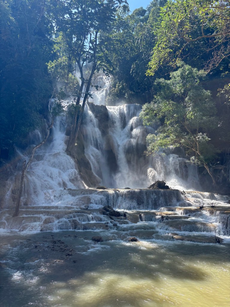 Am zweiten Tag haben wir uns einen Roller gemietet und sind zu einem grossen Wasserfall gefahren. Die Fahrt zog sich und es war extrem heiss. Trotzdem hat es uns der Wasserfall nicht besonders angetan, um darin zu baden. Da es noch das Ende der Regenzeit war, führte er sehr viel Wasser und war dadurch braun gefärbt – nicht besonders einladend. Dennoch war der Besuch und die Abkühlung durch den Sprühnebel sehr angenehm.