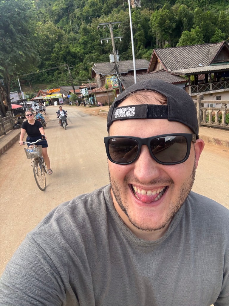 Von Nong Khiaw ging es für uns etwa eine Stunde flussaufwärts in das kleine Dorf Muang Ngoi. Dieser Ort ist zwar nicht mehr der absolute Geheimtipp, gehört aber sicher immer noch zu den weniger besuchten Orten in Laos. Wirkliche Pläne hatten wir nicht – wir wollten einfach alles auf uns zukommen lassen. Die meisten reisen nur für eine Nacht dorthin, was eigentlich auch ausreicht. Wir wollten es jedoch gemütlich angehen und hatten zwei Nächte in einem einfachen Homestay gebucht. Nach der Traumunterkunft in Nong Khiaw war das schnell wieder ein Zurück in die Realität für uns, aber das Zimmer war völlig ausreichend, und das dazugehörige Restaurant bot eine tolle Aussicht auf den Fluss.